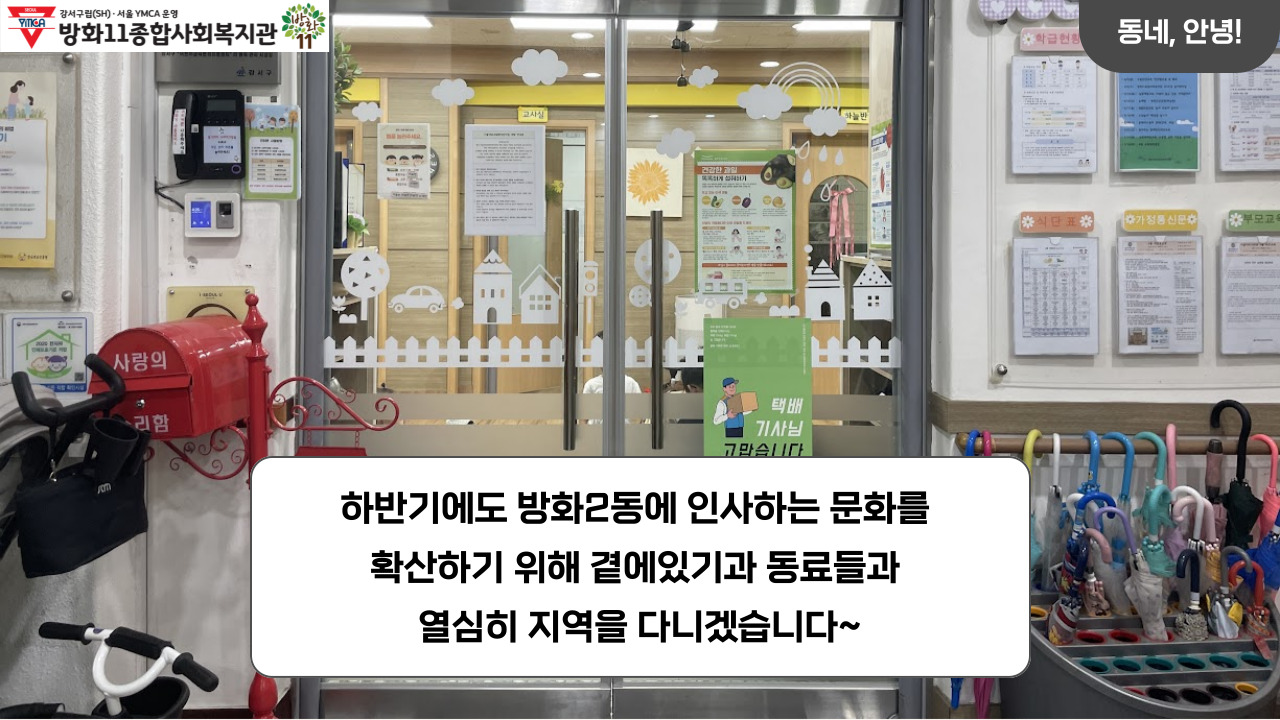 | [동네방네] 방화2동 아동청소년의 슬기로운 동네생활 3~6월 (0) | 2024.08.22 |