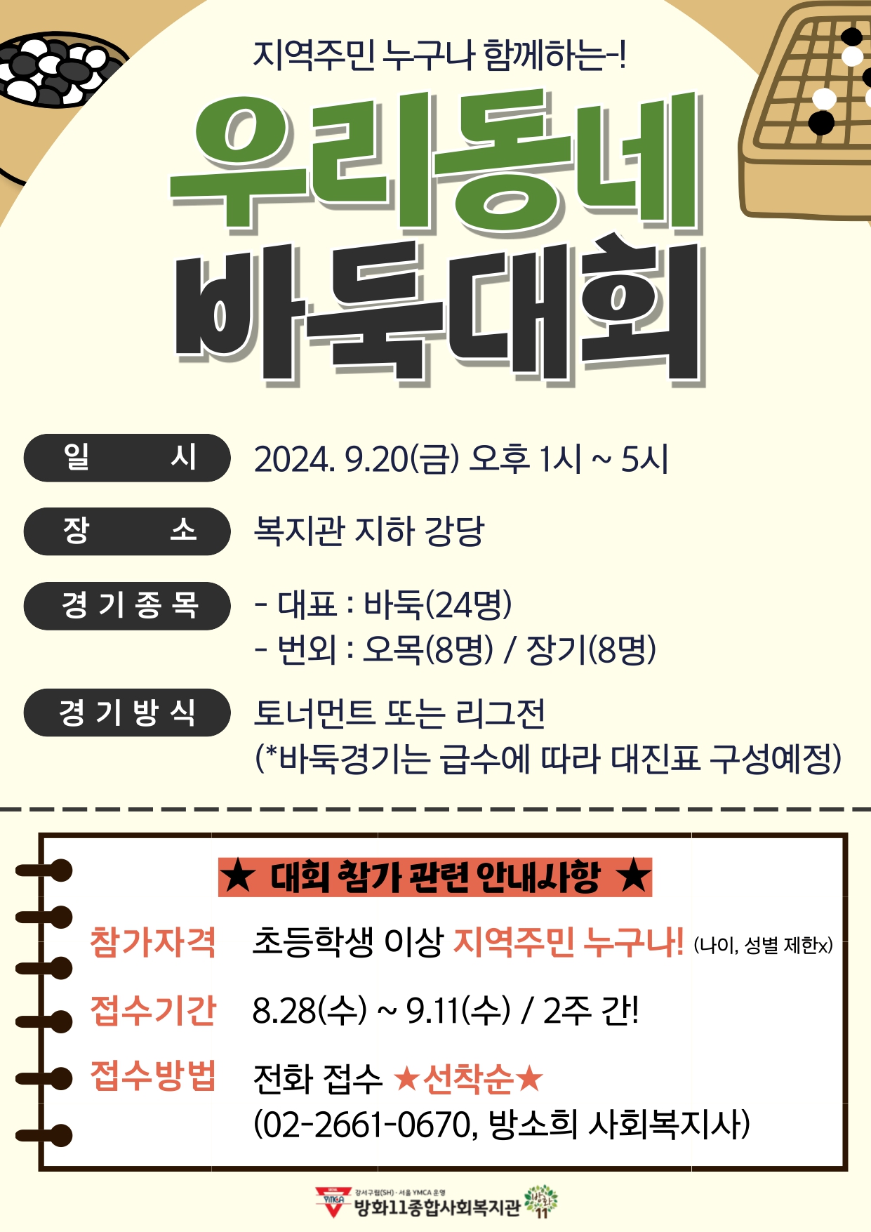 1. 바둑대회 일시 : 2024년 9월 20일(금) 오후 1시~5시