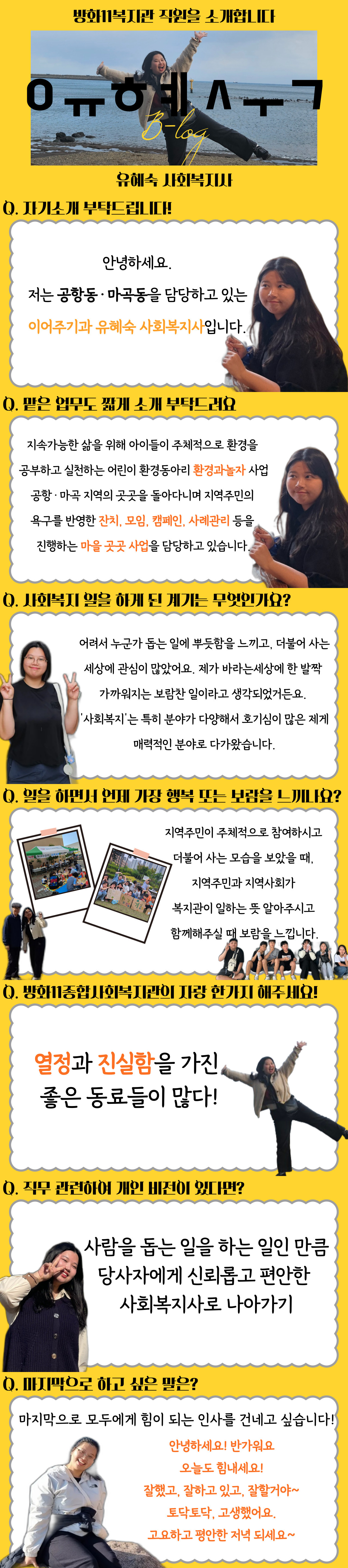 방화11복지관의 밝은 에너지 유혜숙 선생님을 소개합니다