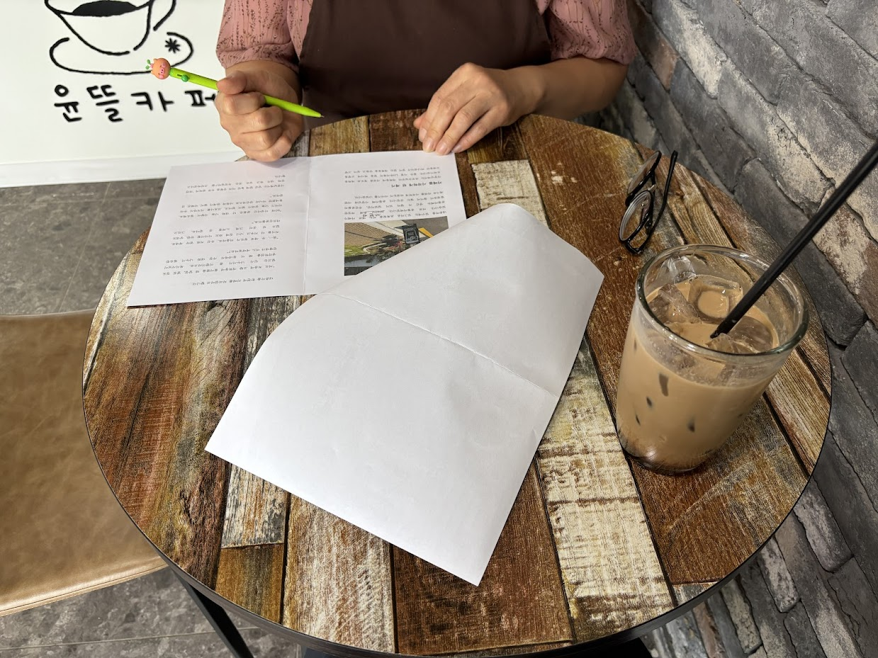 윤뜰카페 사장님을 찾아뵙고 올해 말에 출판할 문집에 들어갈 내용을 보여드렸습니다. 사장님과 이전에 나눈 내용을 갈무리하여 담당자가 작성한 내용을 보시곤 이곳저곳 수정이 필요한 부분을 알려주셨습니다. 추가로 사장님을 통해 개화동 옛 이야기를 들을 수 있었습니다.