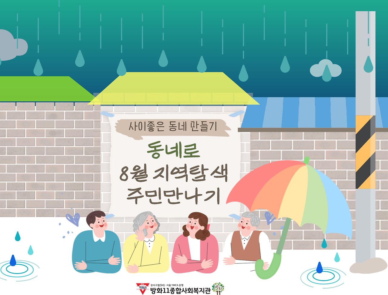 무더위, 장마가 한창인 8월에도 지역탐색, 주민만나기는 계속됩니다~!! 8월에는 올해 남은 시간들 동안 주민분들과 함께 어떤 재미난 사업을 함께 할 수 있을지, 만약 복지관에서 계획중인 사업이 있다면 주민분들께서 어떤 역할을 하시면 주도적으로 참여하실 수 있을지 여쭈며 보냈습니다.