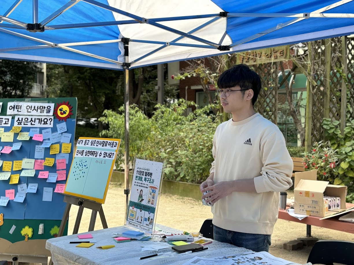 이번 번개팅에서는 주민분들이 이웃에게 어떤 인사말을 듣고 싶은지, 앞으로 이웃과 인사를 실천해 주실 수 있는지 이야기를 듣는 번개팅을 진행했습니다.