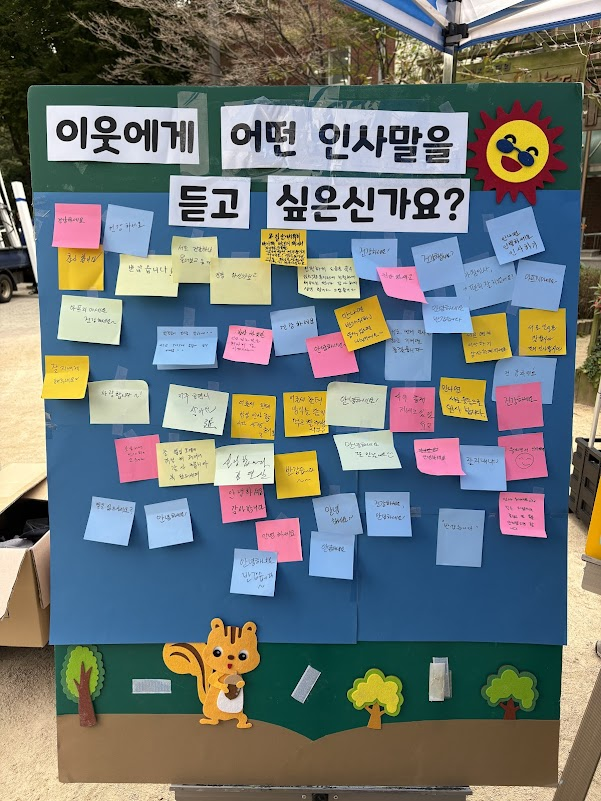 그중에서도 이웃관계를 좋게 하기 위해 내가 해볼 만한 일로 '인사하기'를 가장 많이 말씀해 주셨습니다.