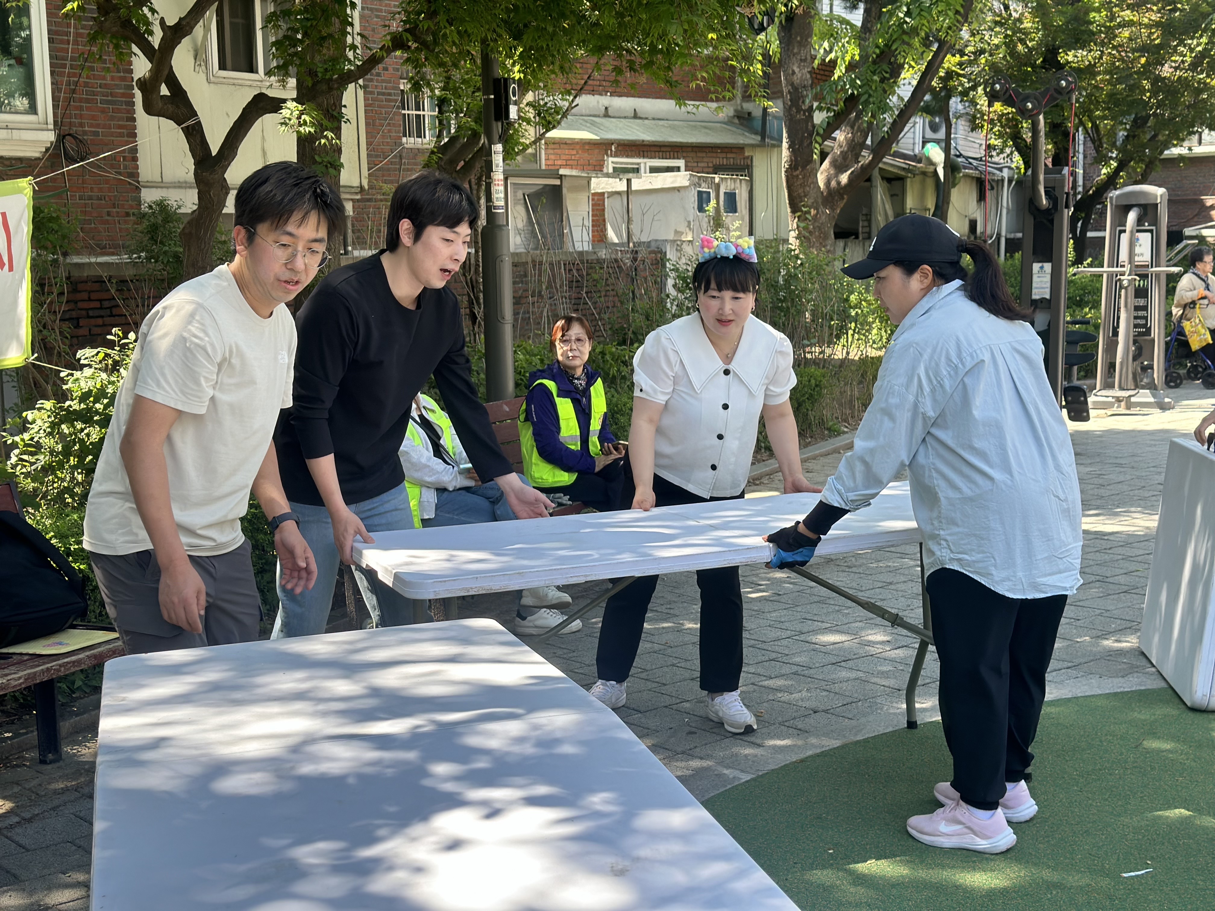 공항동주민센터에서도 힘을 보탰습니다. 구청에 공원 사용 공문을 보냈고, 천막과 책상을 모두 지원하고 설치해주셨습니다. 쓰레기봉투도 지원해주셔서 깨끗한 잔치가 이루도록 도와주셨습니다.