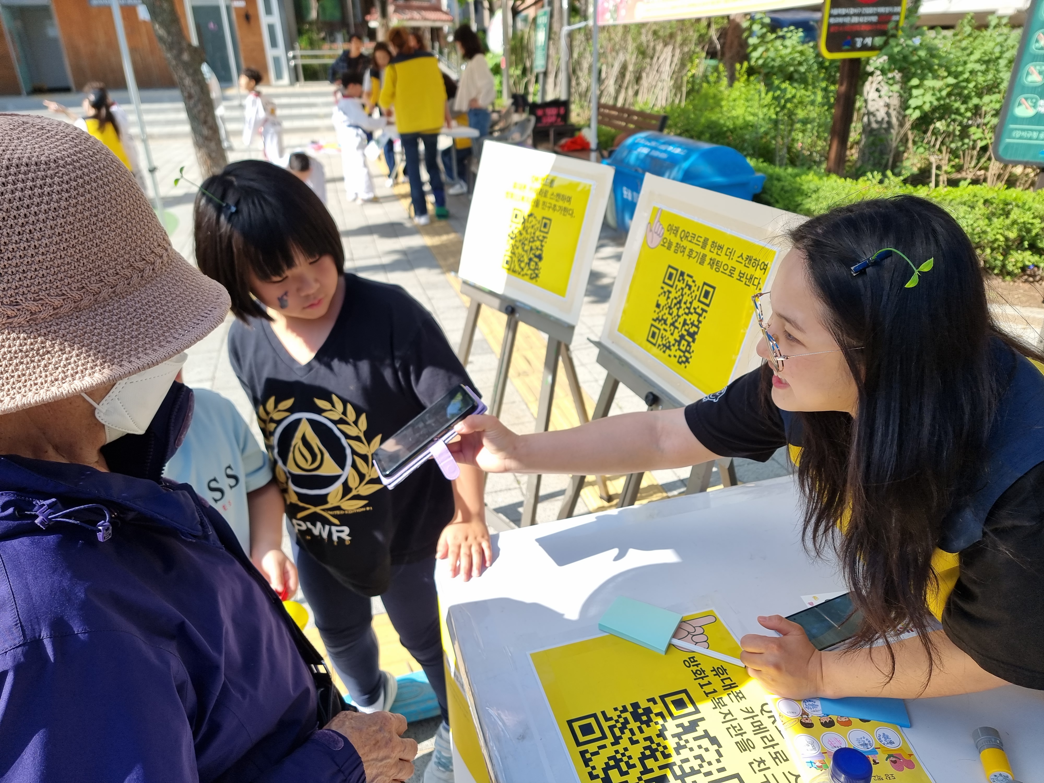 복지관 함께걷기과에서도 복지관 카카오톡 플러스 친구 등록과 홍보를 위해 나왔습니다. 복지관 여러 소식을 공항동 주민들이 손쉽게 받아볼 수 있는 통로입니다. 이렇게 장미공원 가정의달 잔치를 복지관에서 함께 하고 있으니 여러 주민이 그 자리에서 바로 가입해주셨습니다.