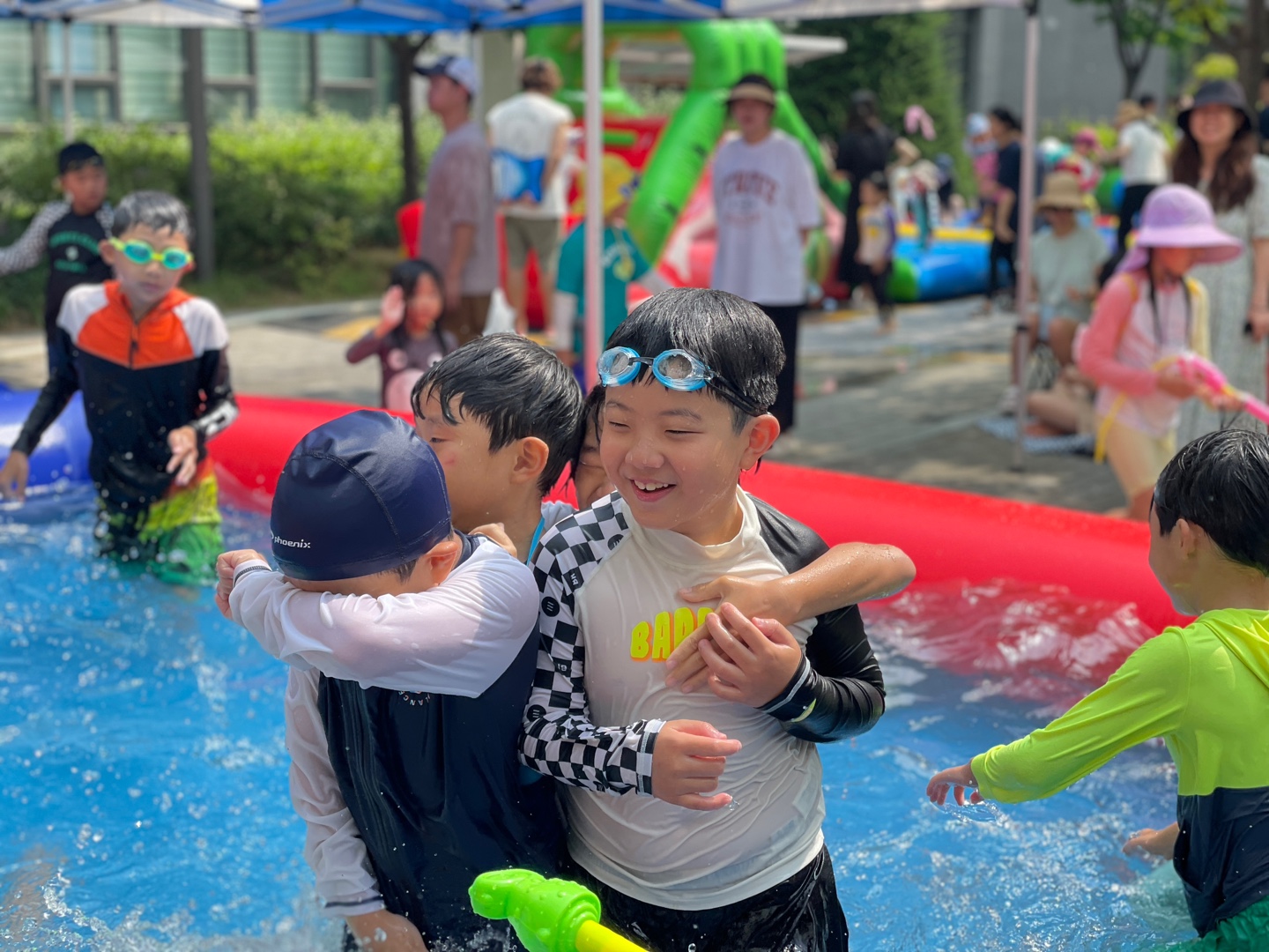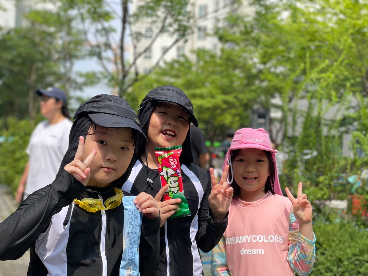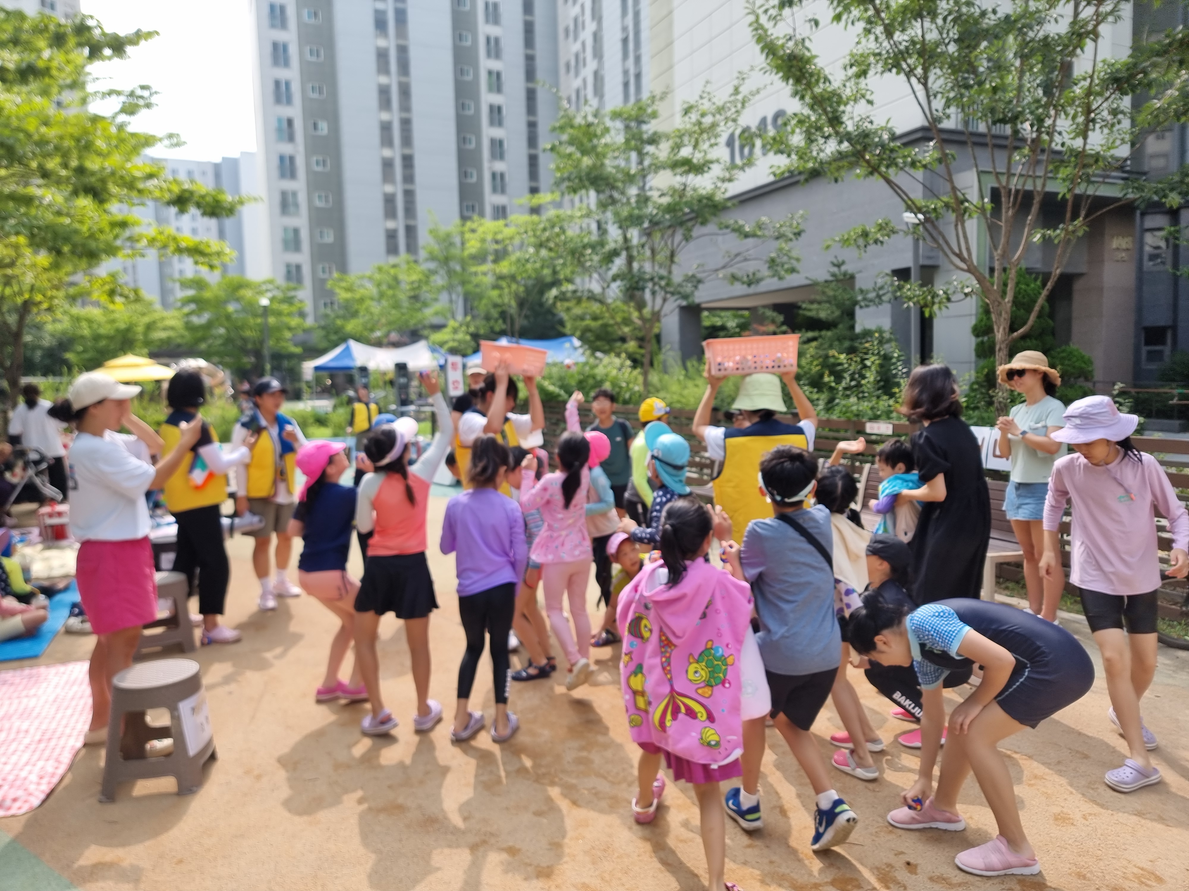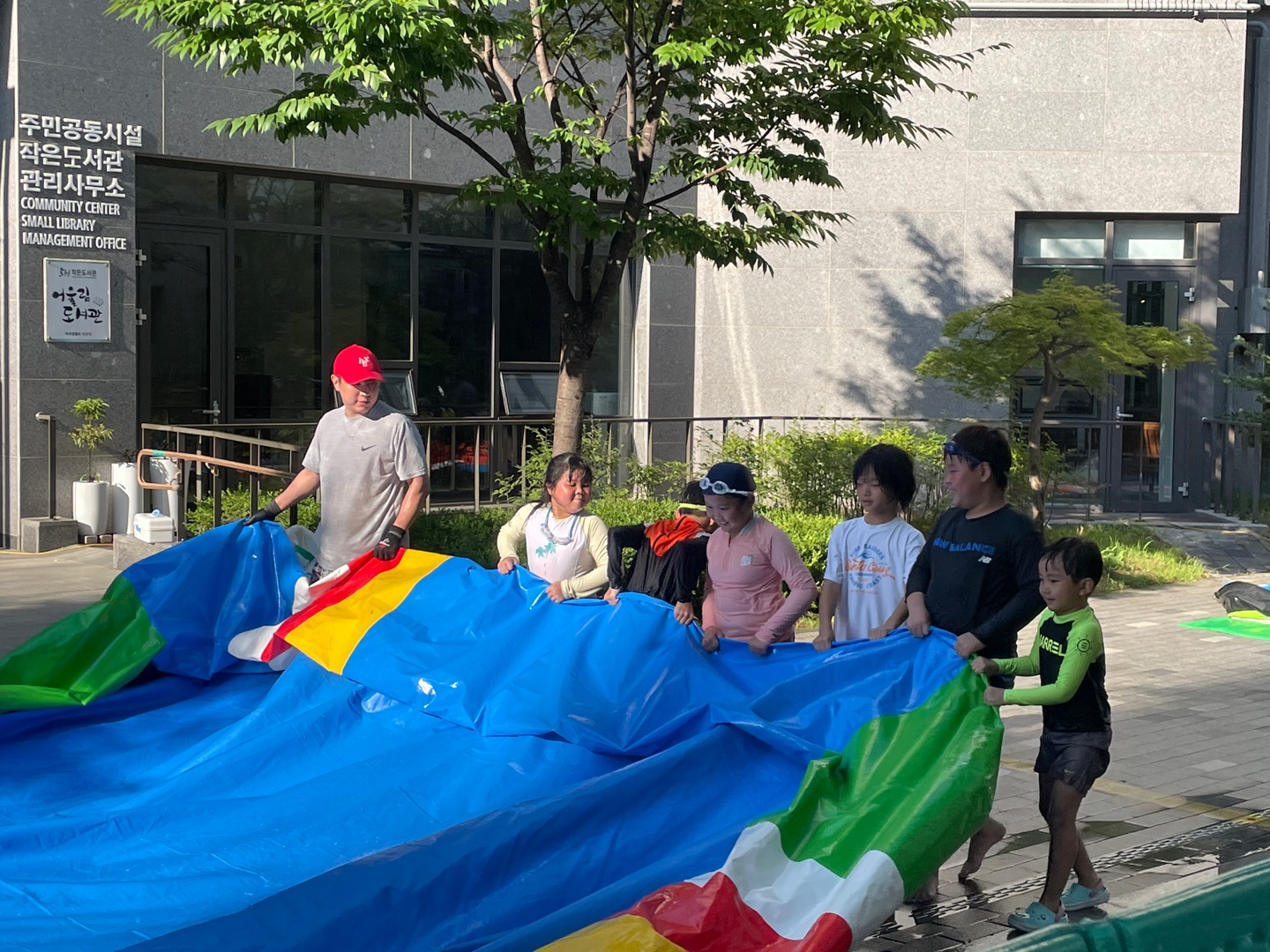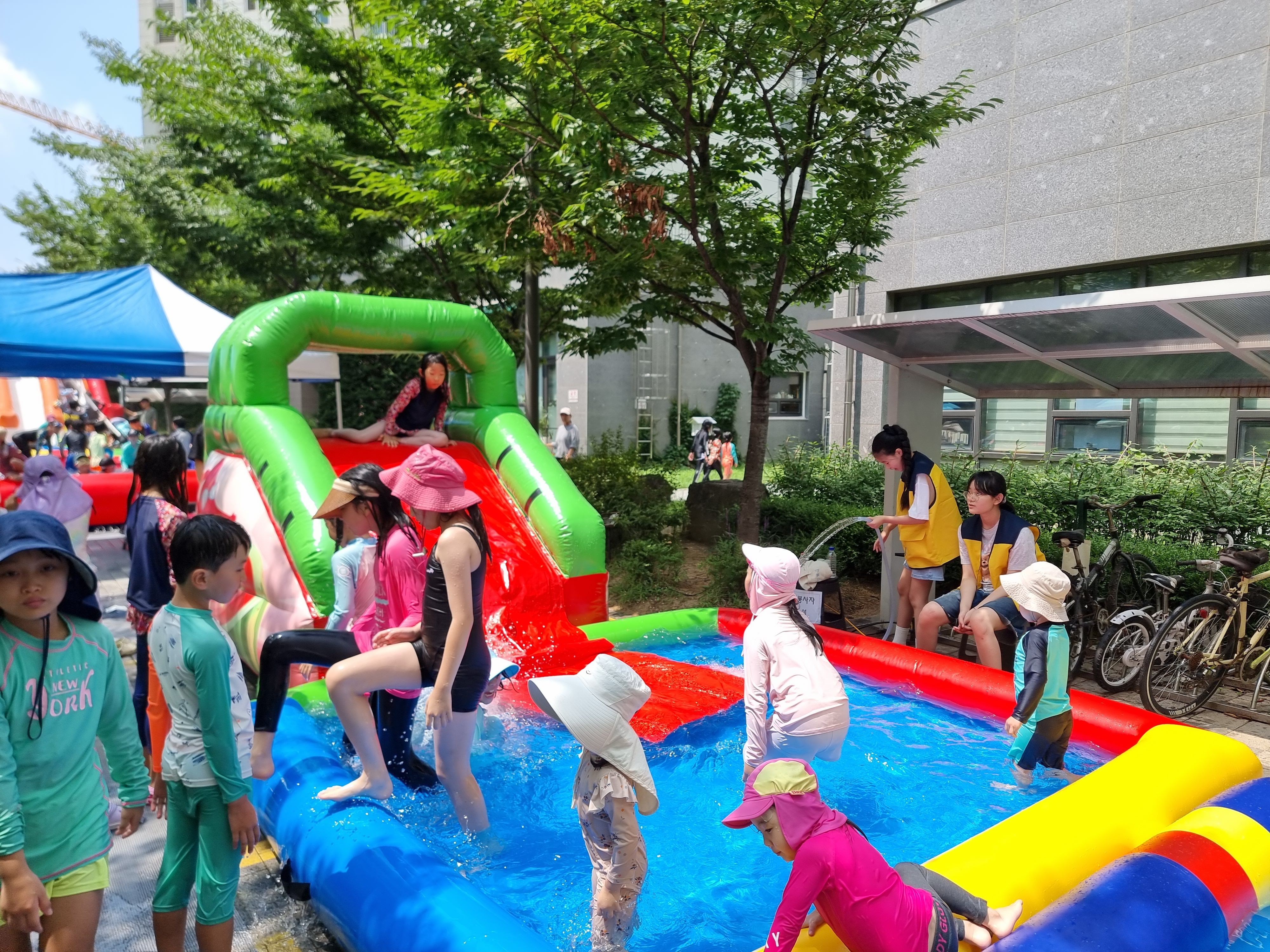 잔치 전날, 아이들처럼 설레고 기대되는 마음에 잠이 잘 오지 않더라고요. 오늘 물놀이 잔치로 동네 아이들이 정말 많이 나왔어요. 제가 아는 아이들도 있고 오가며 만난 아이들도 이번에 이야기 나누기도 했어요. 어른들이 애쓴 덕분에 멀리 가지 않아도 집 앞에서 이렇게 여름 물놀이 잔치를 했어요. 다른 아파트에는 없는 우리 문화에요. 동네 사람들도 우리 아파트가 정겹고 살맛 난다고 해요. (동네친구들 강미애 님)