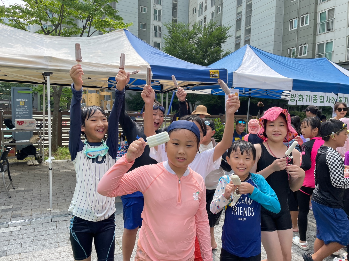 입주자대표회와 관리사무소 소장님이 아이들을 위해 아이스크림을 준비했습니다. 아이스박스에 아이스크림을 가득 사오셔서 200명에게 나누어주었습니다. 모두가 환호했습니다. 동네 어른들이 동네 아이들을 위해 이렇게 마음 써주시니 감동입니다.