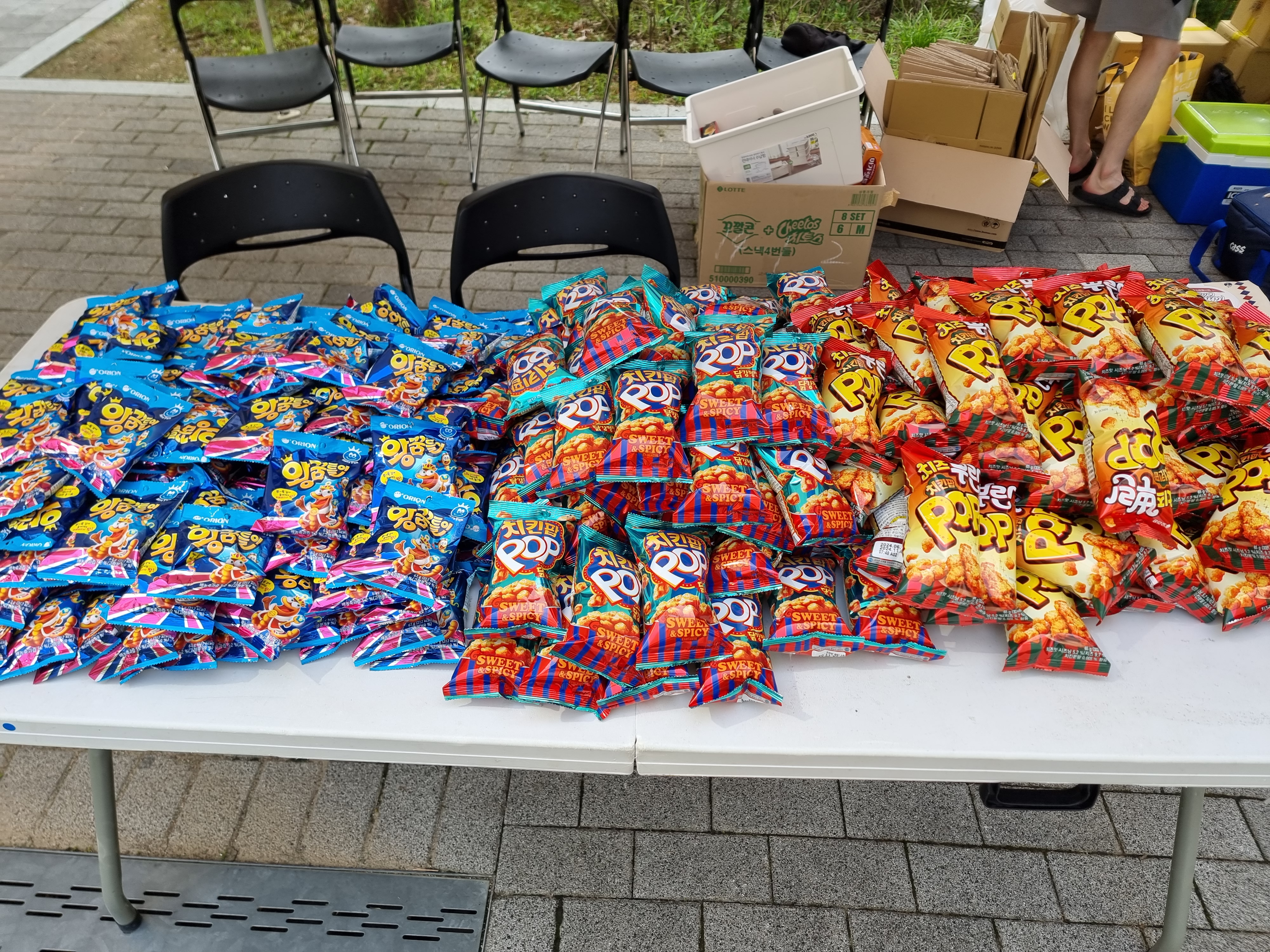 날이 매우 더웠습니다. 자원봉사자들도 천막 아래에 있지만 흐르는 땀을 감출 수 없었습니다. 다행히 아파트에서 자원봉사자들이 쉴 수 있는 실내 공간을 마련해주셨습니다. 에어컨 아래 음료와 컵라면을 주셨습니다. 때때로 쉬면서 지치지 않게 봉사했습니다.