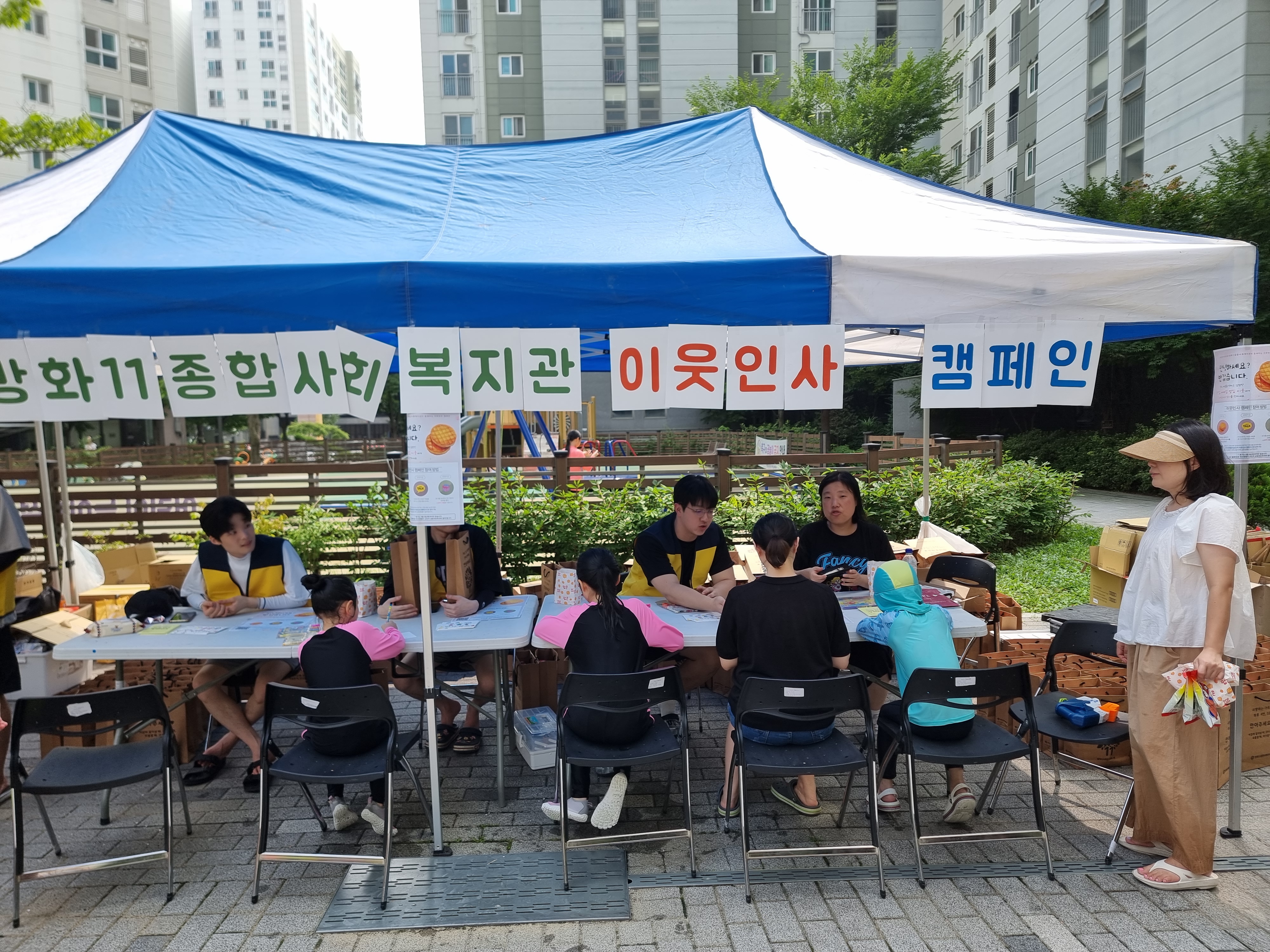 복지관에서 인사캠페인을 맡았습니다. 대만 과자가 대량으로 후원이 들어왔는데 한상자는 내가 갖고 다른 한상자는 이웃에게 편지와 함께 나누는 방식입니다. 아파트마다 층간소음과 흡연문제 등으로 어려움이 있고 이웃과 인사하며 지내지 않는 문화가 많은데 이번 캠페인으로 주민들이 인사할 수 있는 구실이 되고 조금 더 가까워지기를 바랐습니다.