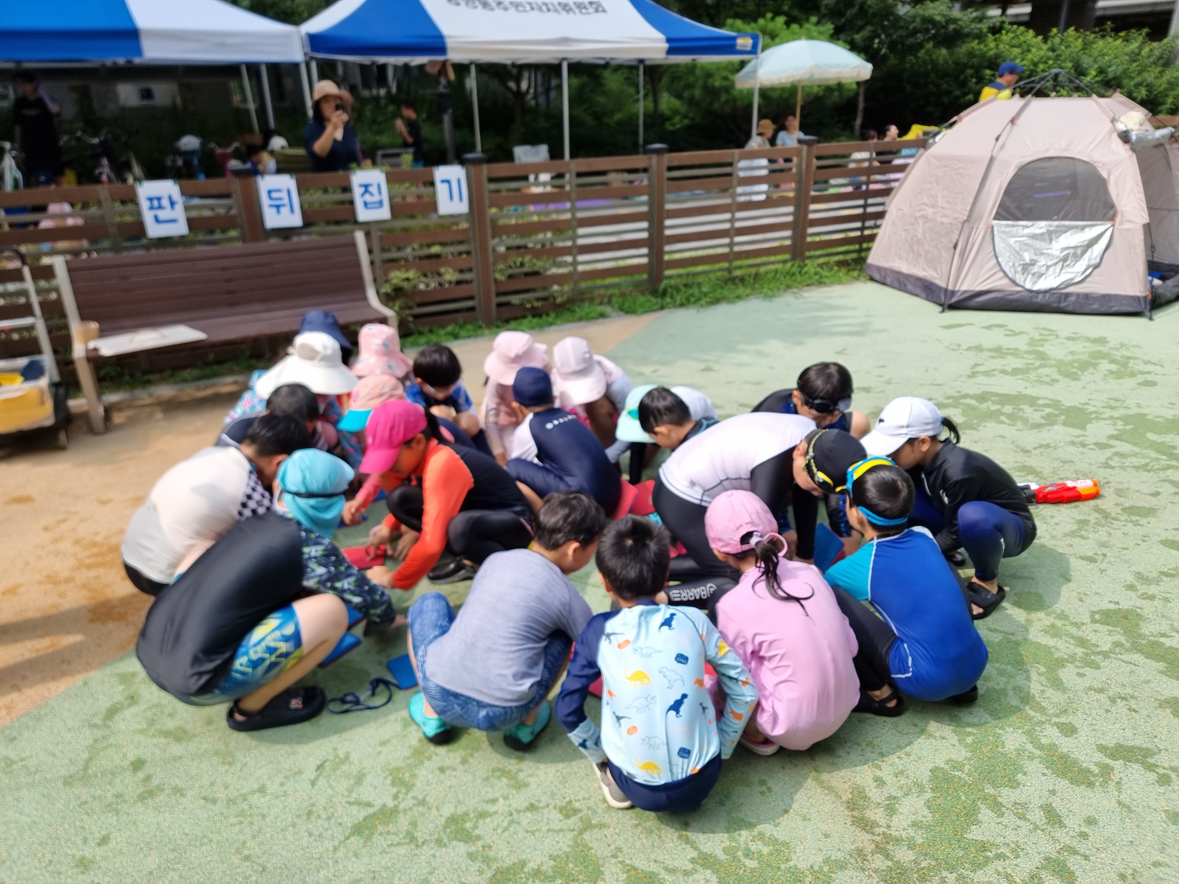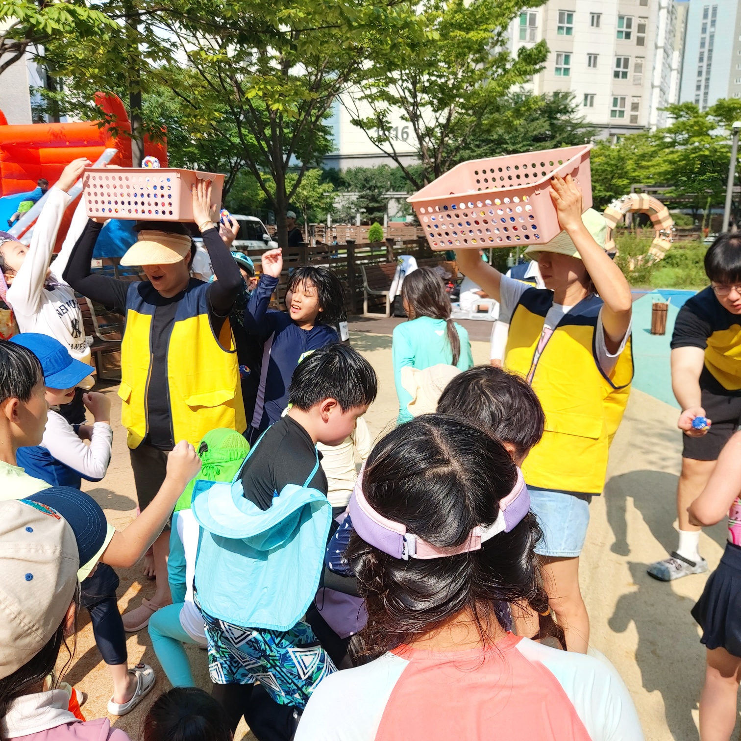 오후 5시. 동대표님의 호루라기 소리와 함께 물놀이 잔치가 끝났습니다. 아이들의 아쉬움이 컸습니다. 각 가정으로 흩어졌습니다. 신나게 물놀이 했으니 오늘 저녁은 가족들과 맛있는 식사를 하고 일찍 잠들 겁니다.