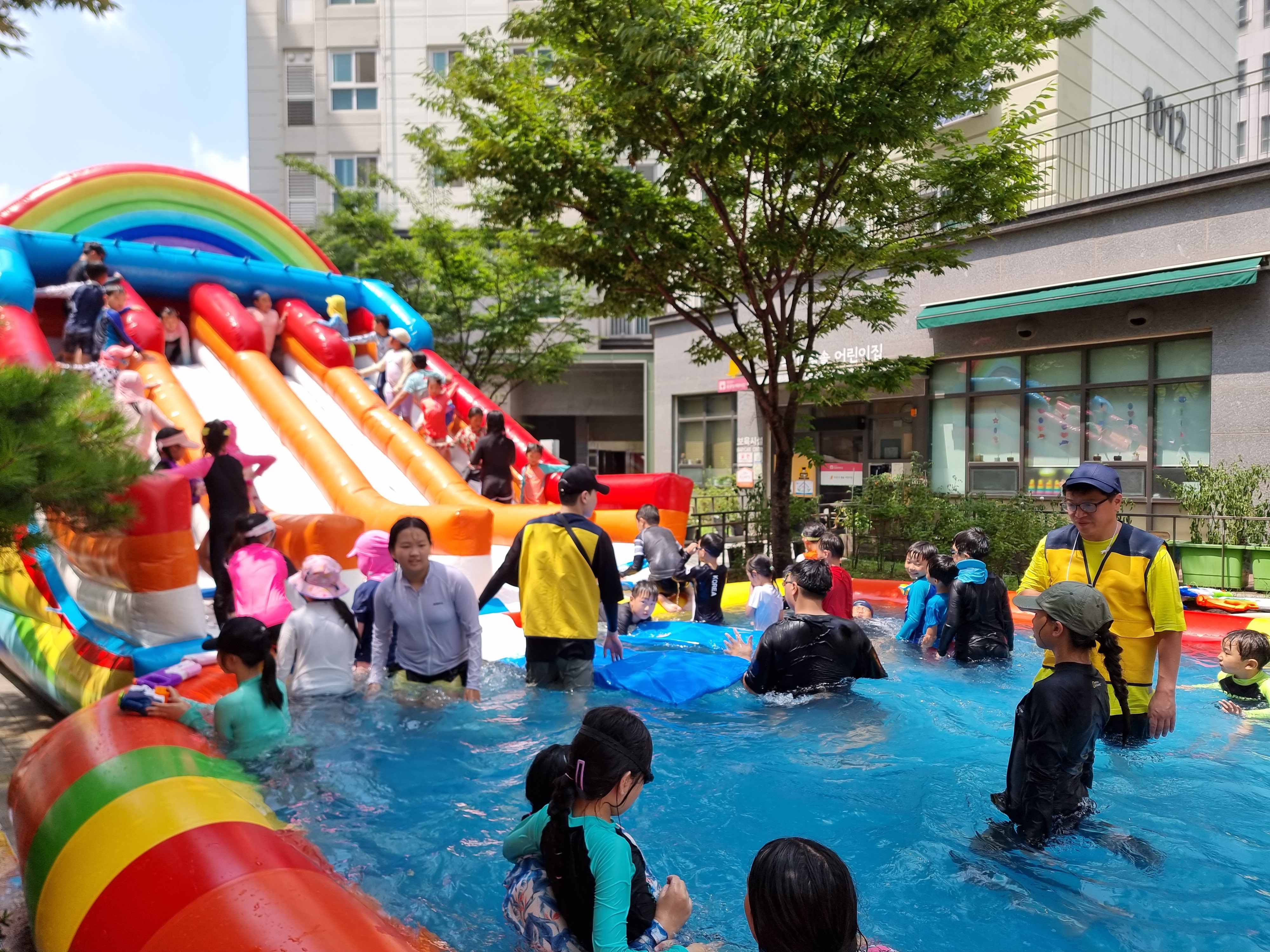 기나긴 장마가 끝났습니다. 작년 마곡10단지아파트 물놀이 잔치를 기억하고 물어보시는 주민 분이 많았습니다. 아파트 입주자대표회와 함께 아파트 중앙에 다양한 물놀이 에어바운스를 설치하고 여러 놀이와 체험부스를 설치해서 아이와 부모 400여명이 함께 신나게 놀았습니다. 주민도 복지관도 다시 이렇게 함께 어울릴 날을 기다렸습니다.