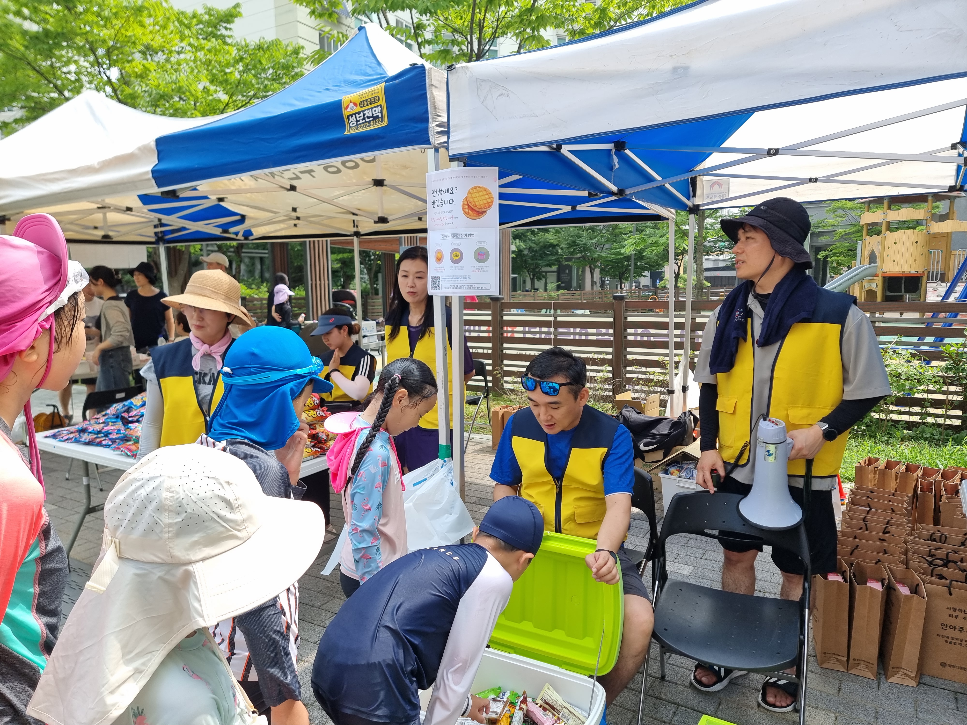 날이 매우 더웠습니다. 자원봉사자들도 천막 아래에 있지만 흐르는 땀을 감출 수 없었습니다. 다행히 아파트에서 자원봉사자들이 쉴 수 있는 실내 공간을 마련해주셨습니다. 에어컨 아래 음료와 컵라면을 주셨습니다. 때때로 쉬면서 지치지 않게 봉사했습니다.
