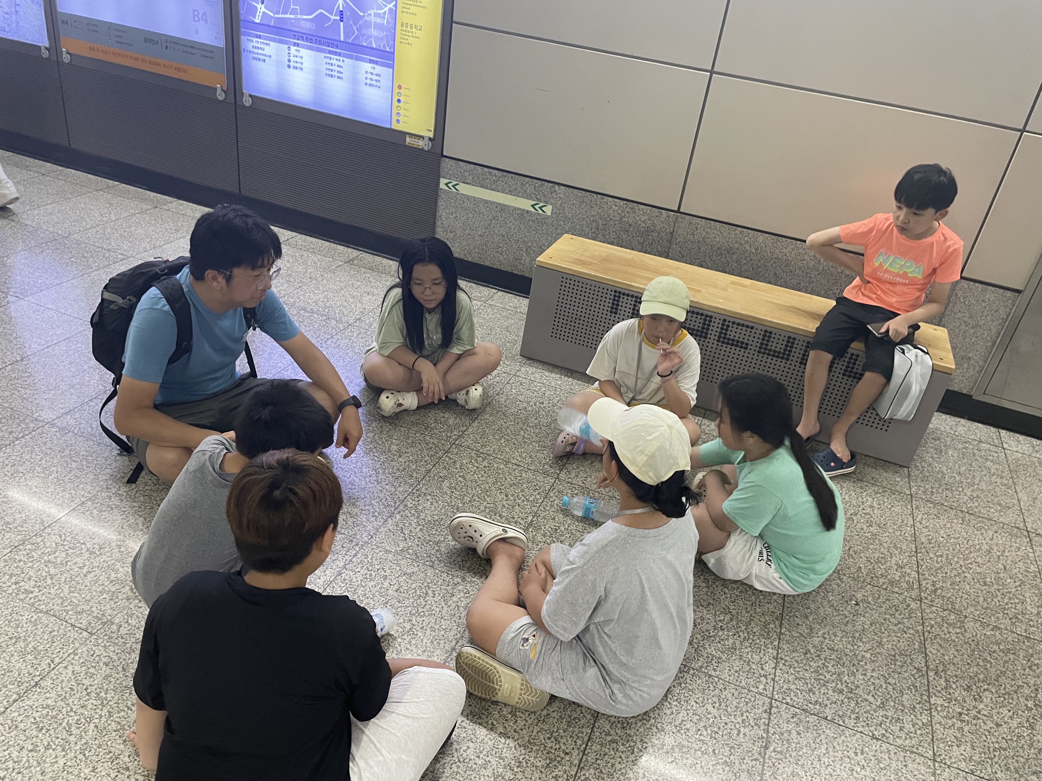 돌아오는 지하철에서도 아이들은 끝없이 놉니다. 환승 할 때마다 둘러앉아 물병 던지기를 하고 놀았습니다. 이렇게 하루를 알차게 꽉 채웠습니다.
