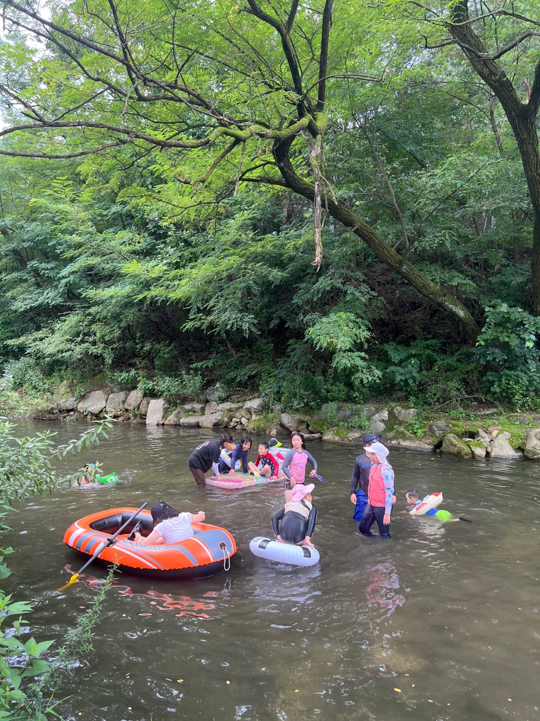 지하철을 타고 가는 것과 계곡에서 친구들과 튜브타고 노는 것이 좋았어요. 시간이 짧아서 아쉬웠어요. 다음에는 더 오래 놀고 싶어요. (이민영 어린이)