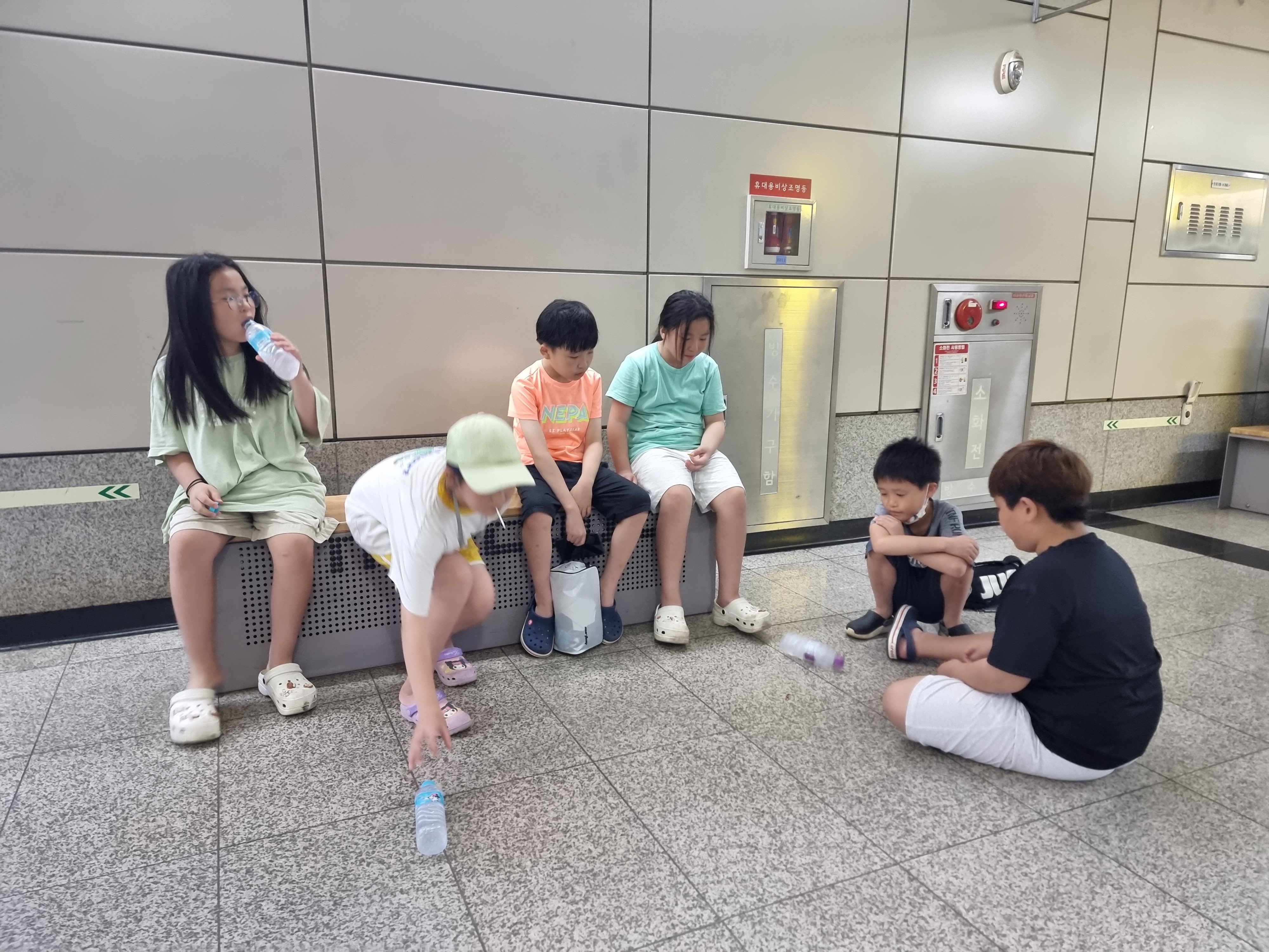 돌아오는 지하철에서도 아이들은 끝없이 놉니다. 환승 할 때마다 둘러앉아 물병 던지기를 하고 놀았습니다. 이렇게 하루를 알차게 꽉 채웠습니다.