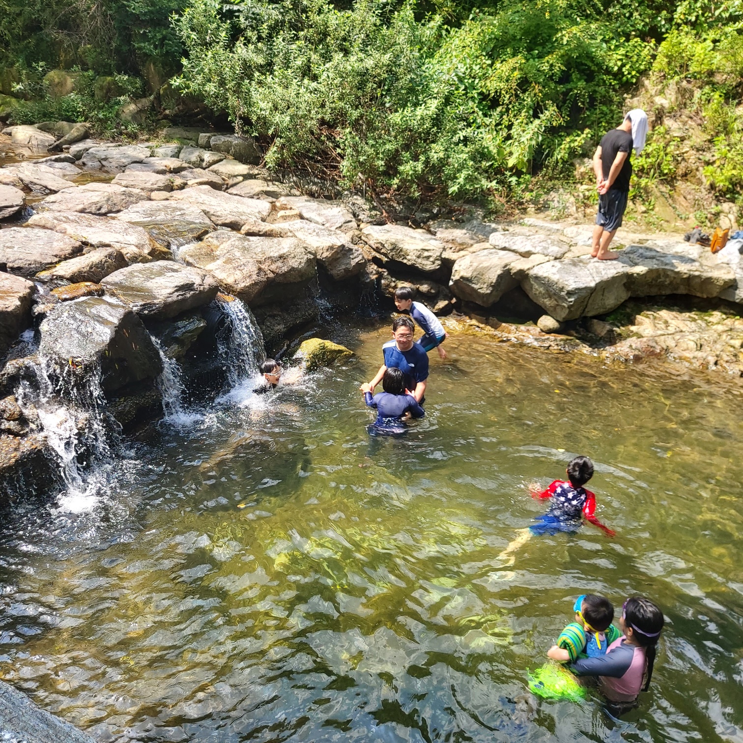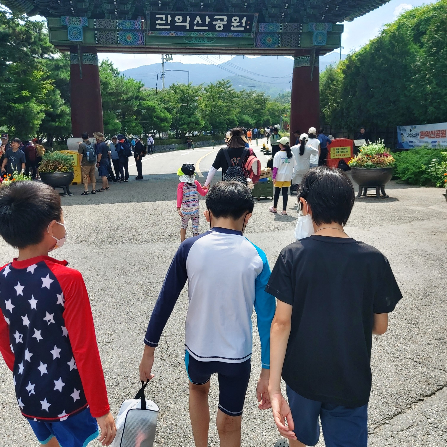 관악산역에서 내렸습니다. 뜨거운 햇볕이 내리쬐었습니다. 그럴수록 시원한 계곡물에 빨리 들어가고 싶은 마음이 커졌습니다. 10분 정도 걸어가니 함께 놀 계곡에 도착했습니다. 일찍 출발한 덕분인지 생각보다 사람도 많지 않았습니다. 자리를 잡기도 전에 아이들은 순식간에 계곡 물속에 뛰어들었습니다.