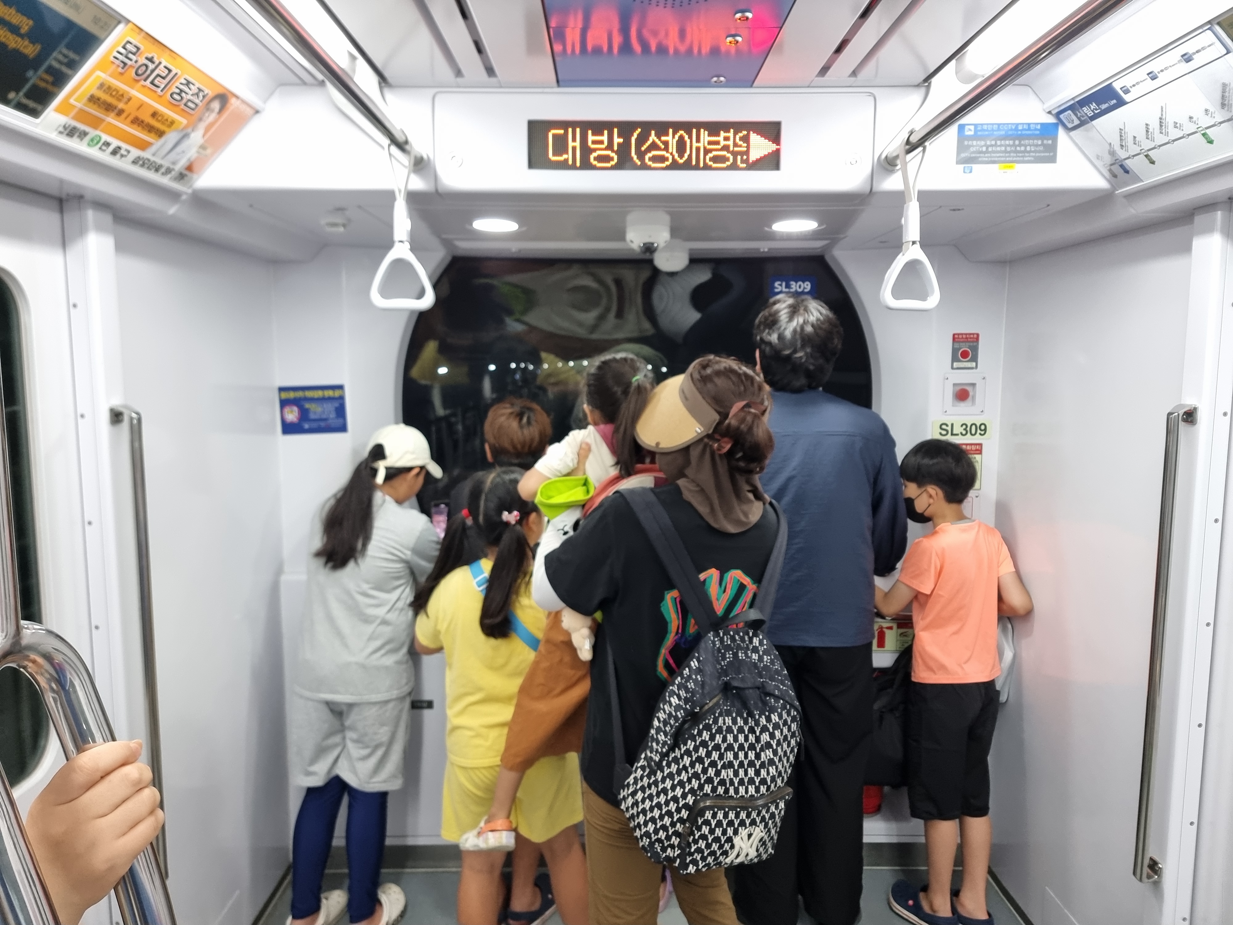 많은 인원이 지하철을 타고 이동했습니다. 특히 무인으로 운영하는 신림선은 아이들이 신기해합니다. 자리에 앉지도 않고 맨 앞에서 구경하며 갔습니다. 오늘 처음 온 조승용 어린이도 금세 동갑내기 친구들과 자연스럽게 어울리며 놀았습니다.