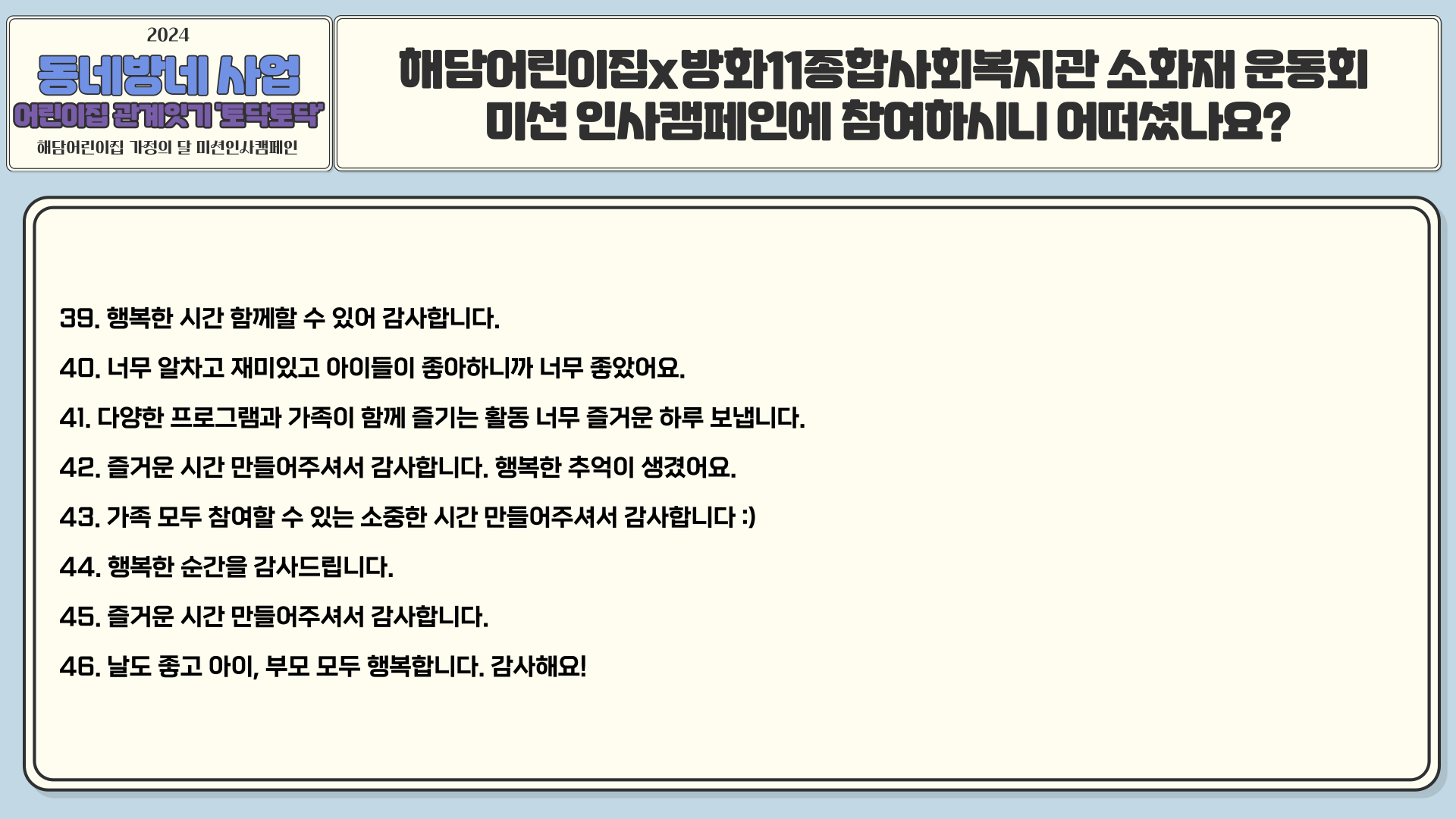 가족과 함께한 미션 인사캠페인에 참여하시니 어떠신지 소감을 여쭈었습니다.