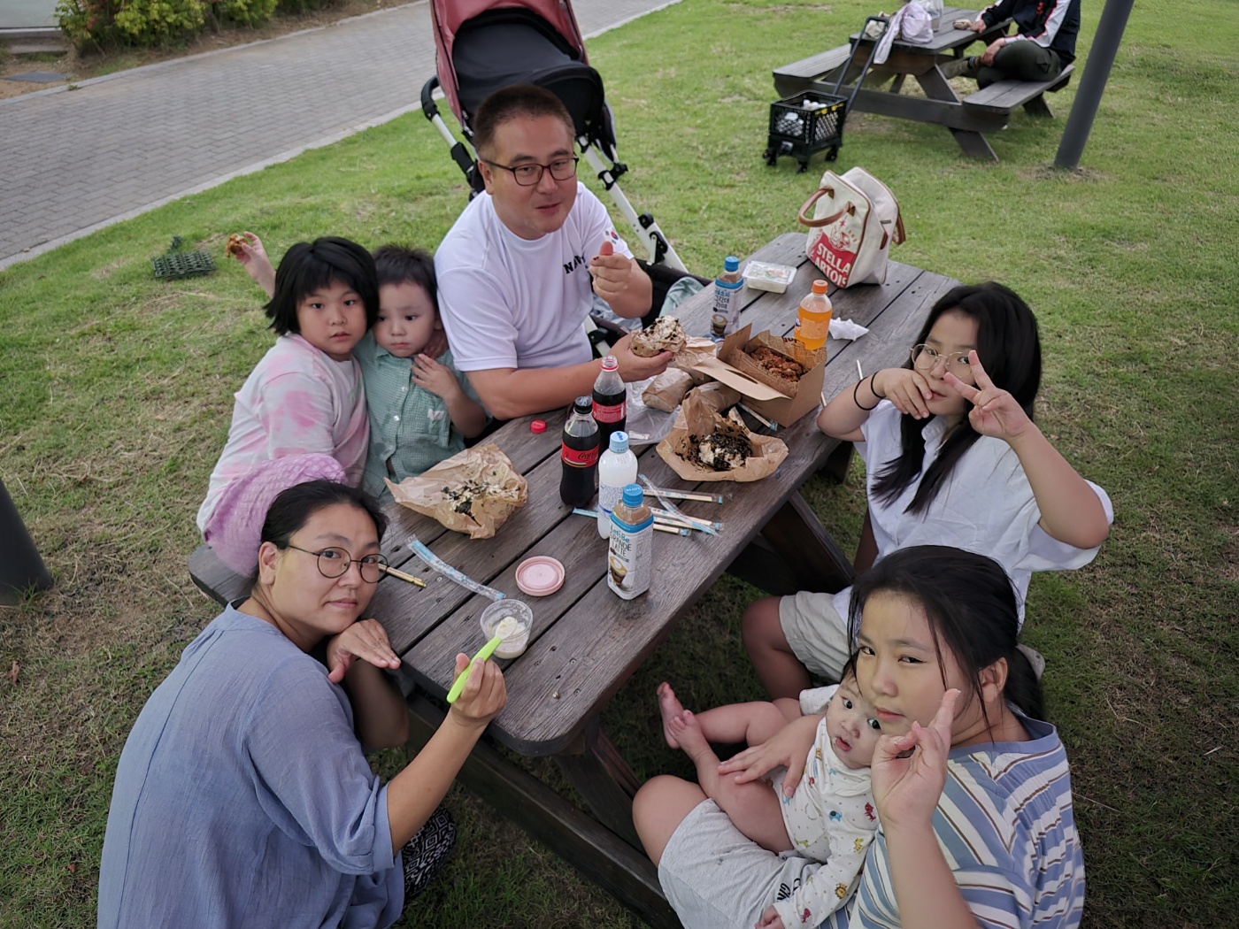 선선한 날씨에 걷기 좋았습니다. 예쁜 조명과 그늘 아래 벤치가 정말 캠핑장이나 글램핑장을 연상시켰습니다. 함께 먹으니 치킨과 주먹밥 둘다 맛있었습니다. 부모들이 좋아하는 알코올은 없어서 살짝 아쉬웠습니다. (안경수 님)
