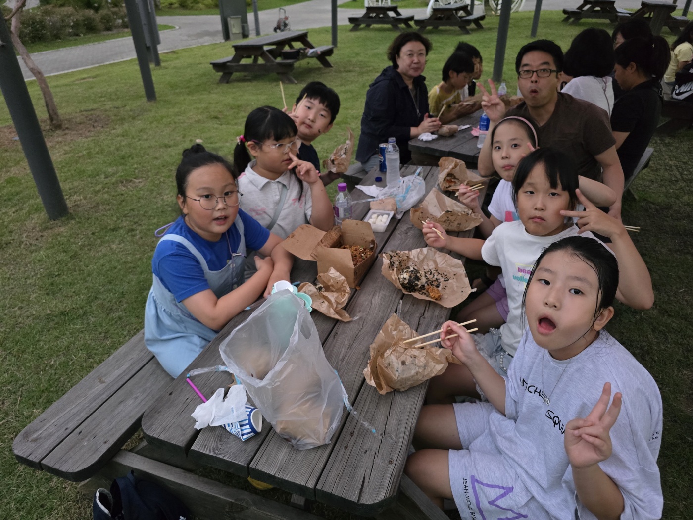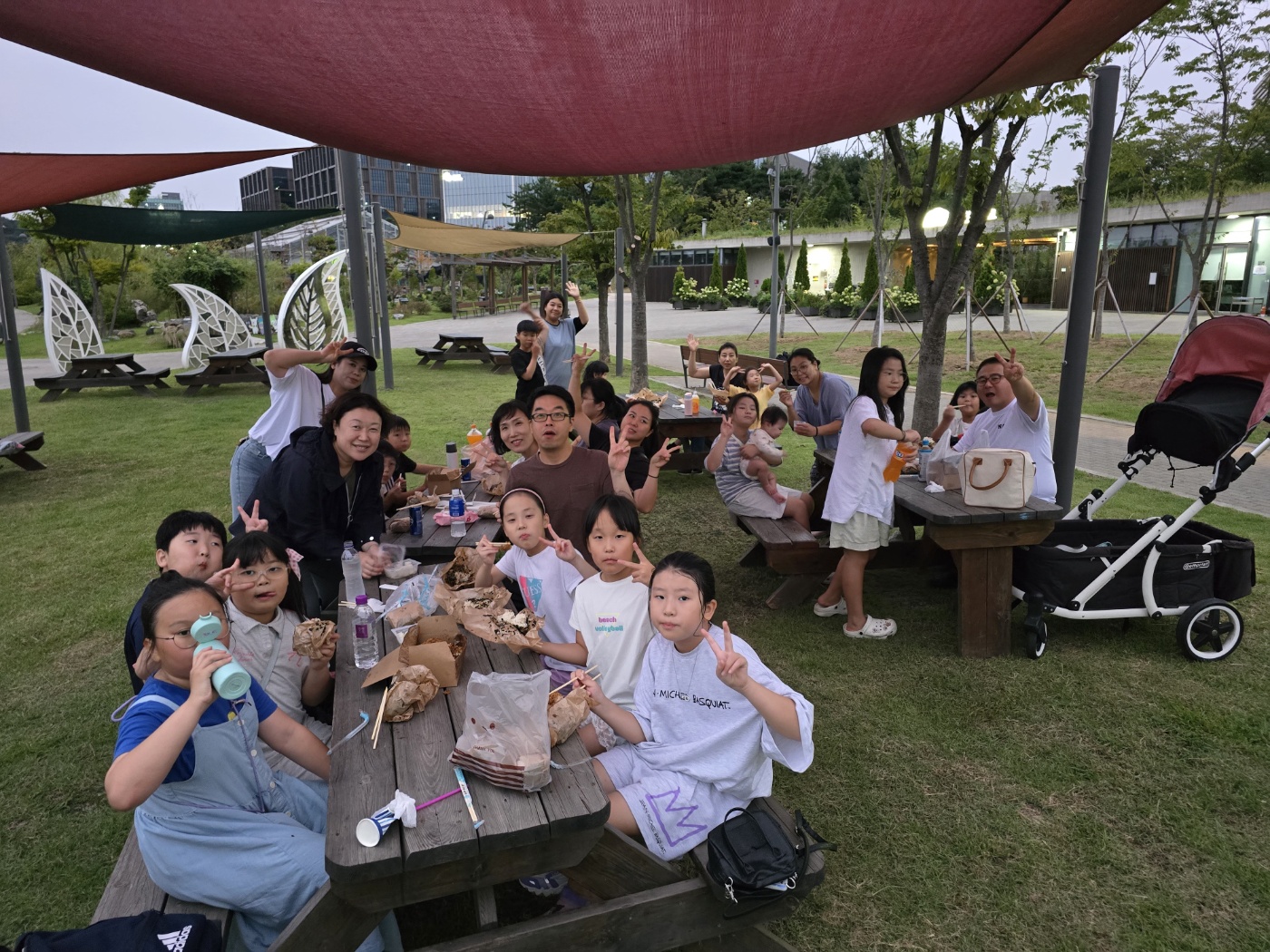 선선한 저녁에 나들이 좋았어요. 처음 만난 가족들도 반가웠어요. 시은이는 밥먹다가 놀이터로 뛰쳐나갔어요. 1시간만 더 놀고 집에 가자는 것을 만류하느랴 혼났어요. 오늘 아빠가 처음 참여해서 그런지 더욱 좋았어요. 반려동물 콩콩이도 반가웠어요. (박영숙 님)