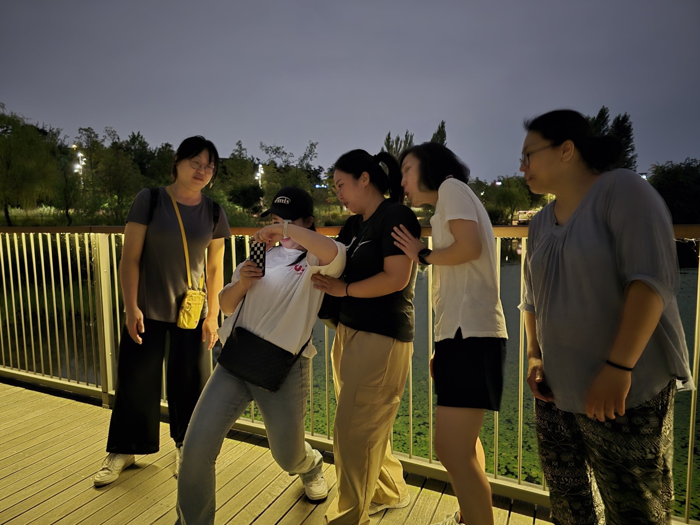 아이들을 살펴주는 부모 외에 다른 엄마들과 공원 산책을 하기로 했습니다. 어느덧 아이들이 엄마 없이 놀이터에서 놀 수 있는 나이로 훌쩍 자랐습니다. 엄마들도 자녀들과 떨어져 자유로운 시간을 만끽했습니다. 공원 호숫가에 근사한 조명이 켜졌습니다. 멋진 분위기에 엄마들도 소녀들처럼 웃음이 끊이지 않았습니다. 공원 곳곳에서 함께 사진을 찍었습니다.