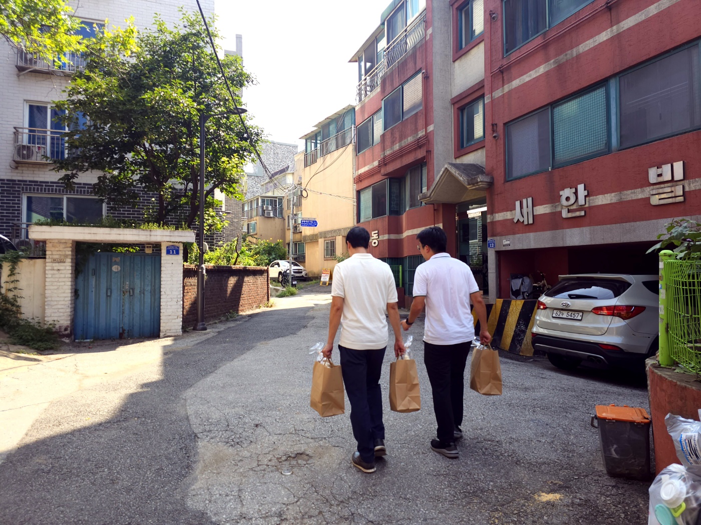 변석희 목사님과 교회에서 만났습니다. 이번 추석 잔치 의미와 당사자의 상황을 간략히 나누었습니다. 목사님께서 직접 가정방문을 하며 인사하고 전달했습니다. 이미 목사님과 관계가 있는 분들이 많아 직접 집으로 찾아오신 목사님을 반갑게 맞아주셨습니다. 목사님께서 이런저런 안부를 물으시고 필요하신 것이 있는지 살피셨습니다. 반려견을 키우고 싶은데 어떻게 구해야 할지 모르는 분을 도와주시기로 했습니다. 집 대청소가 필요해 보이시는 분께는 도움을 드려도 되는지 물어보셨습니다. 세심하게 당사자의 일상과 마음을 살폈습니다.