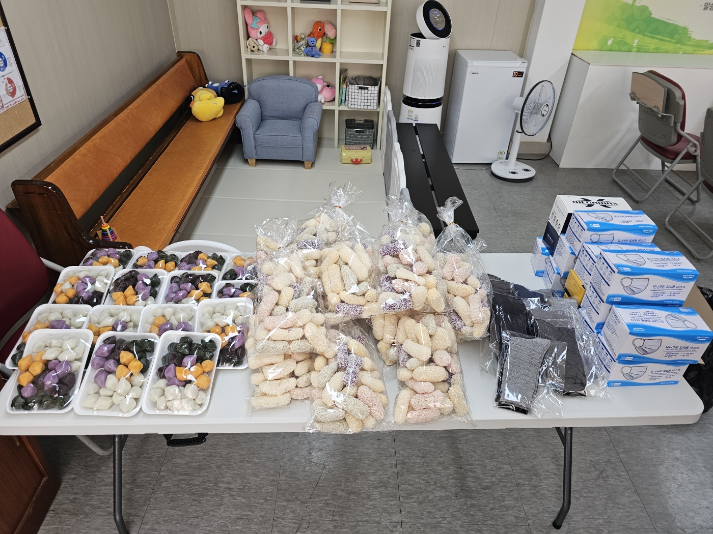 그동안 라면과 생필품 등으로 꾸러미를 많이 나누었는데 이번엔 추석을 앞두고 명절 분위기를 낼 수 있기를 바랐습니다. 2만 원 상당의 송편과 유과를 준비하기로 했습니다. 유과는 연휴에도 천천히 나누어 먹을 수 있으니 좋습니다.