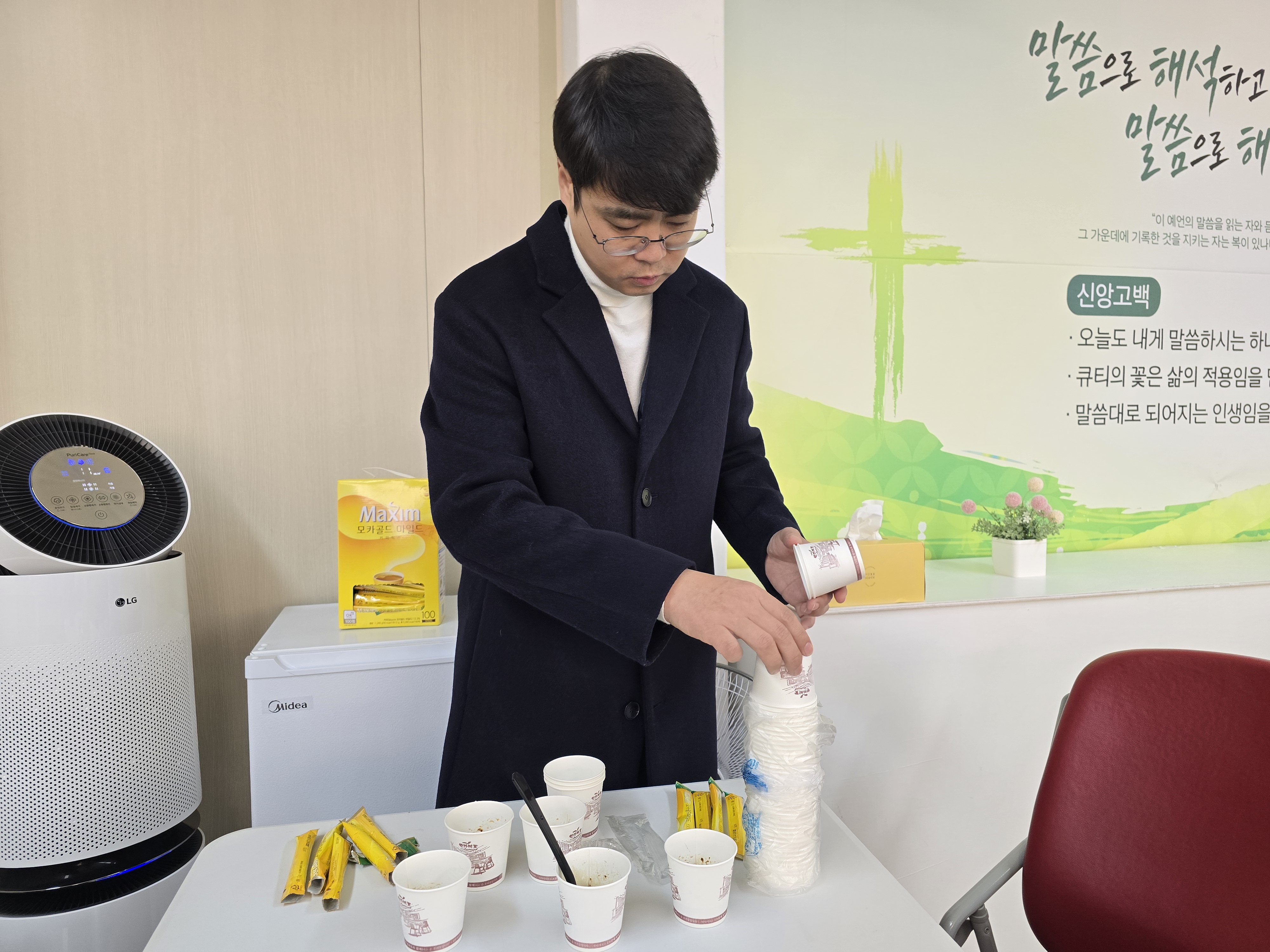 지난 추석 잔치 때는 코로나19 재유행과 여러 사정으로 가정방문으로 나누었다면 이번엔 교회에 직접 모여서 간식을 나누면서 꾸러미를 전해드리기로 했습니다. 대신 이미 목사님과 나들이를 다녀오면서 관계가 있는 분들만 초대하기로 했습니다. 목사님과 충분한 관계가 없는데 교회로 초대하는 건 조심스러웠기 때문입니다. 늘 목사님께서는 이웃과 나누는 활동이 교회 전도로 비춰질까 조심스러워 하셨습니다. 그래서 이번 잔치에서 교회에서 커피와 간식을 나누는 일도 이미 나들이를 함께 다녀온 분들만 모이기로 했습니다.