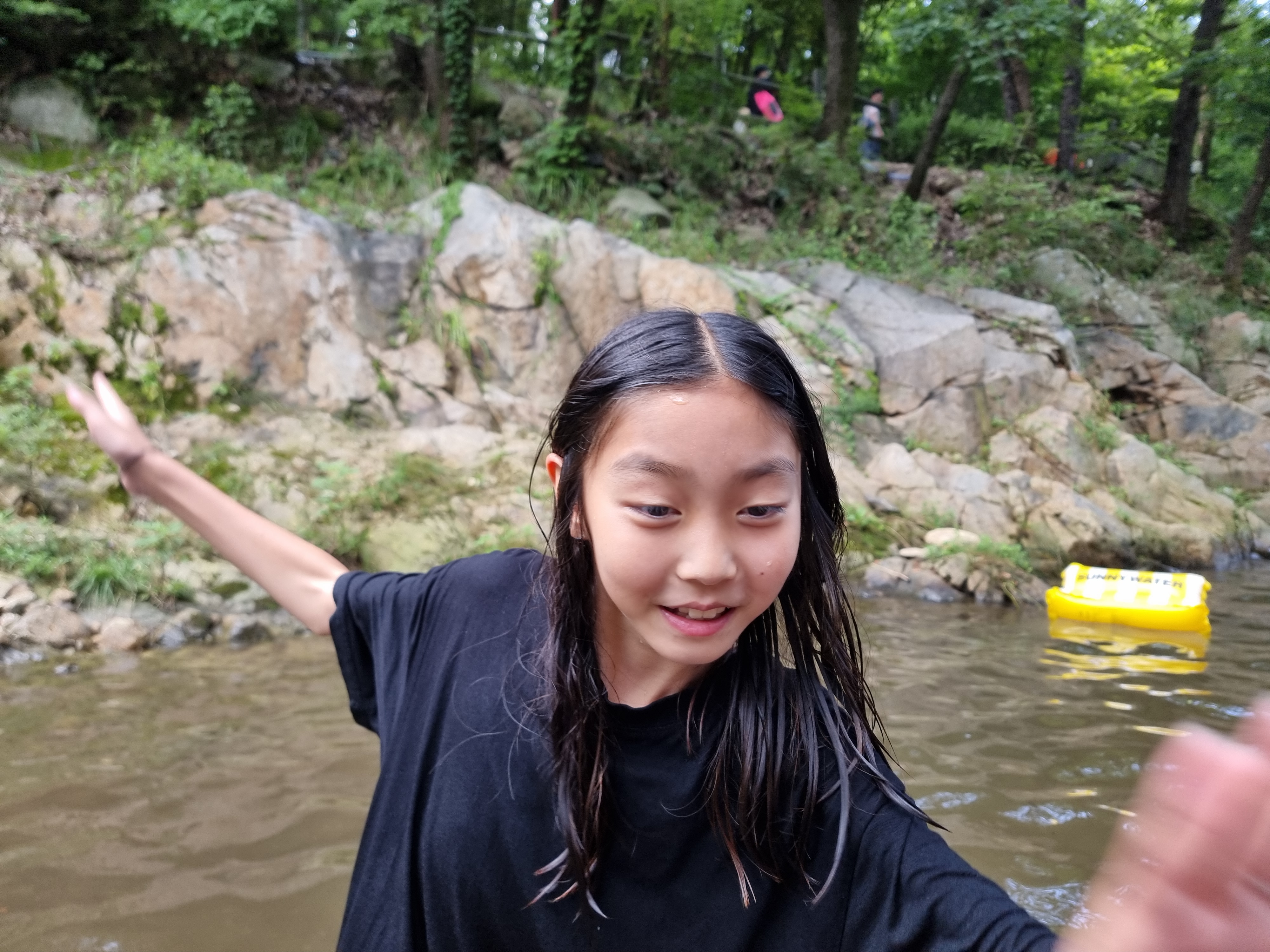 “일 년 만에 작년에 왔던 계곡에 왔어요. 그때 그 친구들과 함께 오니 좋아요. 요즘 학원도 다니고 많이 바빠서 놀기 힘들었는데 이렇게 여름방학 때 물놀이 할 수 있어서 좋아요.”