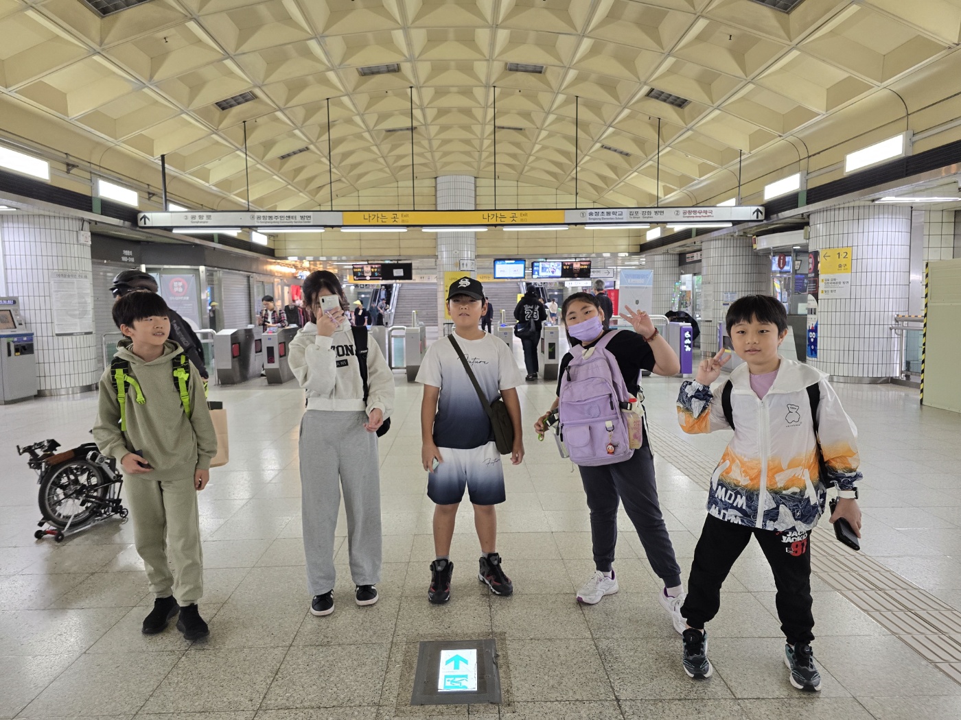 서울역까지 지하철을 타고 이동했습니다. 송정역에서 김포공항으로 가서 환승했습니다. 아이들이 직접 길을 찾고 지하철을 탔습니다. 원래 서울역에서 버스를 타고 남산도서관까지 이동하려 했으나 우리가 서울역 도착 직전에 국군의 날 행사로 버스와 차량이 모두 통제되었습니다. 아이들과 긴급회의를 했습니다. 걸어서 올라가기로 했습니다. 힘들법 하지만 서로 응원하며 올랐습니다. 세찬이는 오르다 힘들면 주저 앉았습니다. 함께 손잡고 응원하니 다시 일어났습니다.