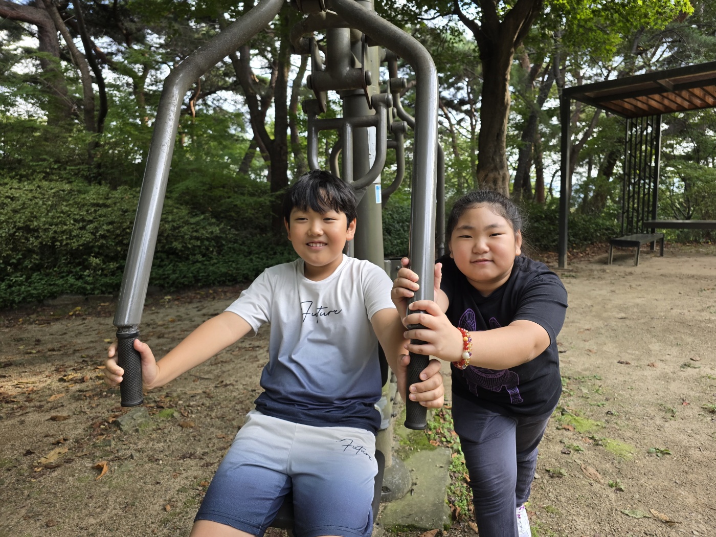 “운동기구에서 함께 논 것이 좋아요. 제가 축구부 활동도 하거든요. 체력이 좋아서 친구들에게 알려줄 수 있어서 좋아요. 같이 돈까스도 먹으니 더 맛있어요. 해지는 모습과 야경도 정말 멋져요.”