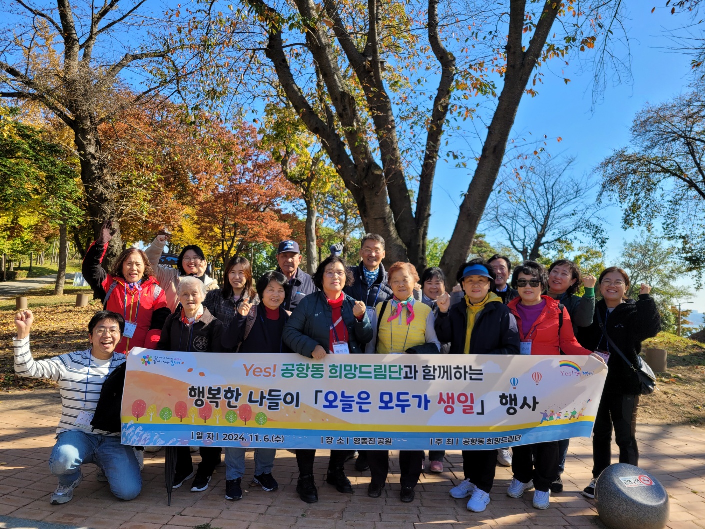 복지관에서 나들이를 적극 도왔습니다. 공항동과 멀지 않은 영종도를 추천했습니다. 어르신도 쉽게 걷고 누릴 수 있는 공원이 있고 멀리 바다까지 보이는 좋은 경치도 있습니다. 여러 명이 갈 수 있는 식당도 있고 가을을 만끽 할 수 있는 단풍도 있습니다. 복지관에서 차량 지원을 하기로 했습니다. 공항동주민센터에서 식사와 간식 예산을 지원하기로 했습니다.