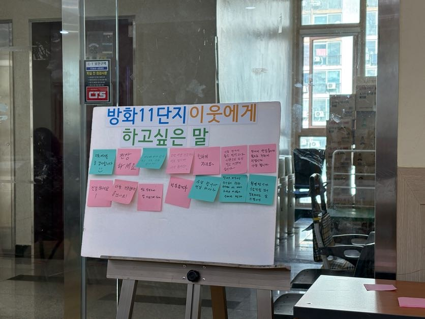 “들어가시기 전에 이웃 분들께 하고싶은 말을 써서 붙여주세요!”