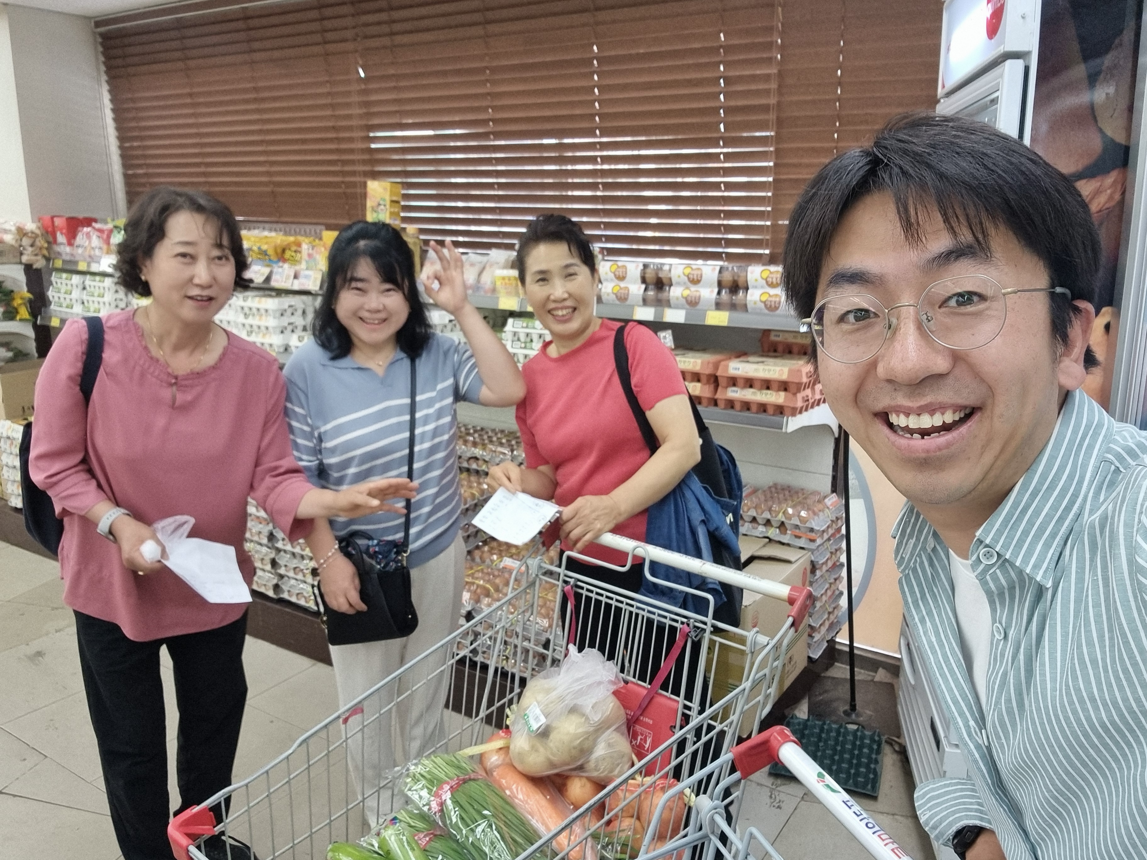희망드림단 회의에서 5월 부침개 잔치 날을 정했습니다. 단체대화방에서도 준비해야 할 것을 수시로 의논했습니다. 잔치 전날에는 희망드림단 임원이신 황선미 단장님, 김은순 총무님, 박순득 감사님과 함께 장을 봤습니다. 주부 9단 실력으로 동네에서 저렴한 프라임마트에서 장을 보기로 했습니다. 저렴하고 좋은 재료를 엄선했습니다. 임원 분들께서 재료를 미리 다듬어서 내일 잔치날에 가져오시기로 했습니다.
