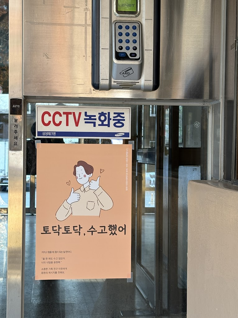 "마트랑 다른 곳에도 포스터가 있더라고요. 동네 분위기가 따뜻한 느낌이에요."
