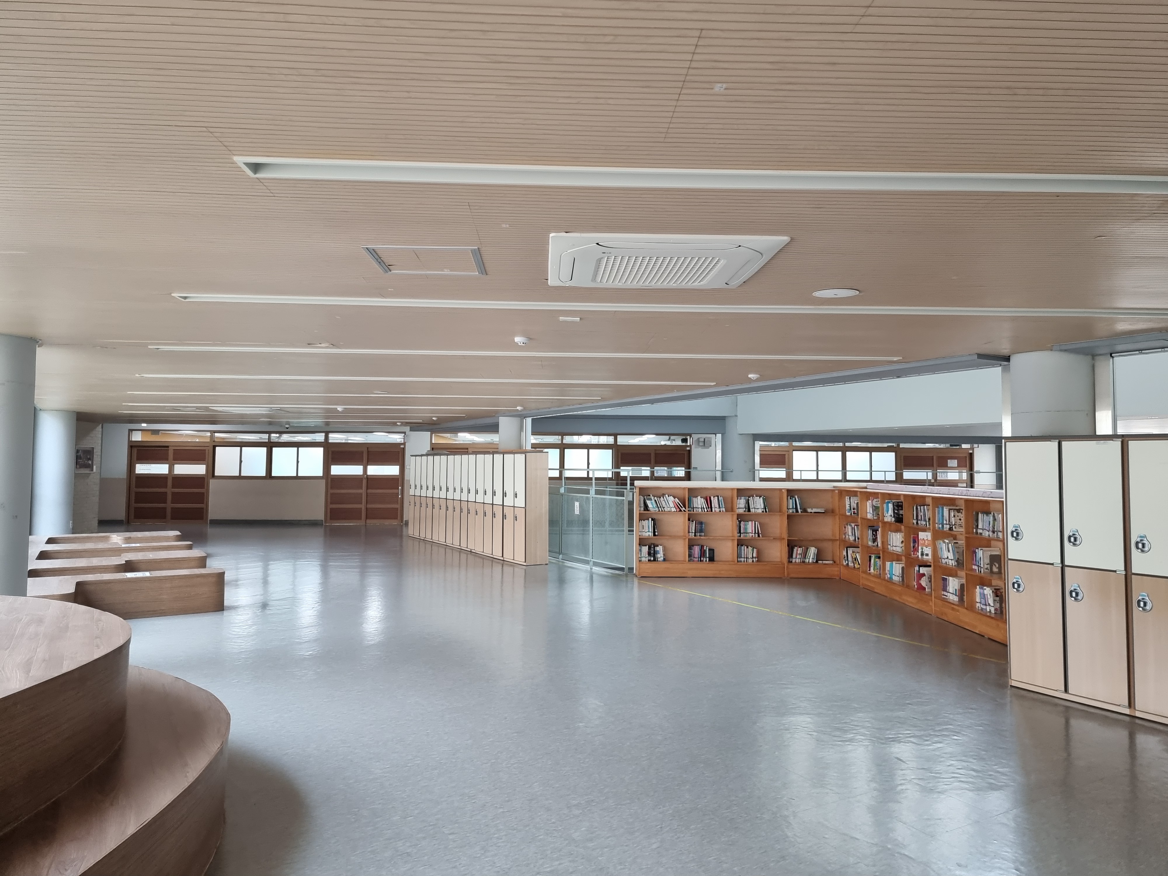 학교가 새롭게 지어진 만큼 넓고 좋은 공간이 많았습니다. 특히 1층 로비는 계단식으로 되어 있고 4층 복도에서도 한눈에 보이는 공간이었습니다. 전교생이 이벤트나 인사캠페인을 하기 좋은 공간입니다.