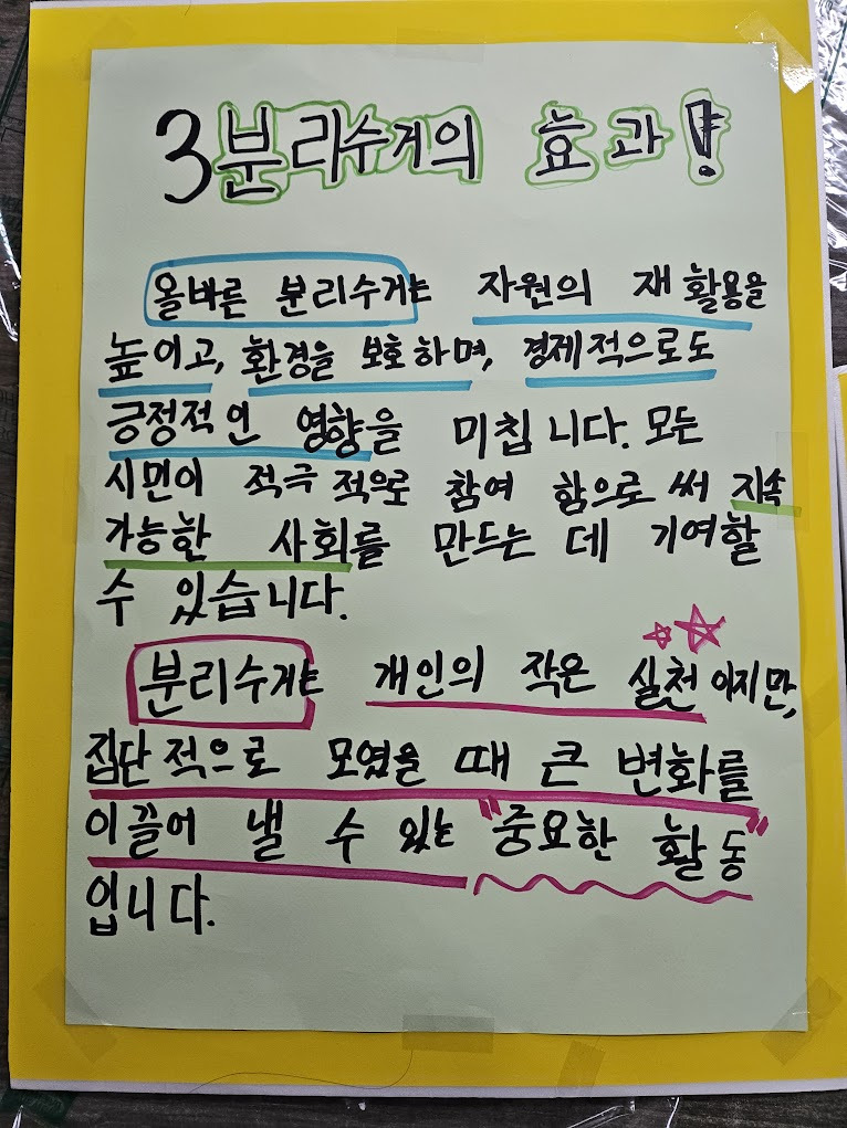 이야기를 나누며, 분리수거가 환경 보호의 출발점이라는 점을 강조하고,