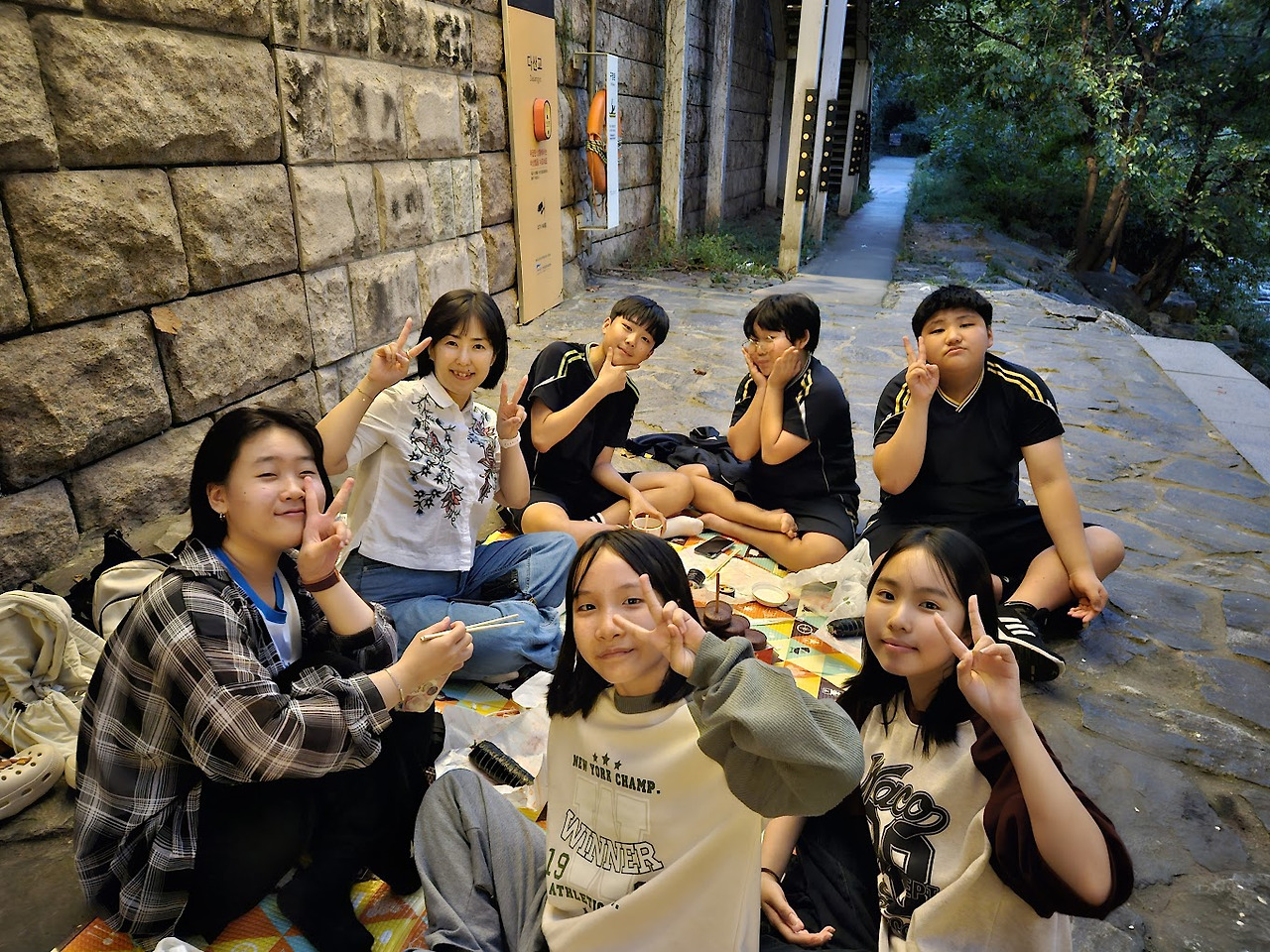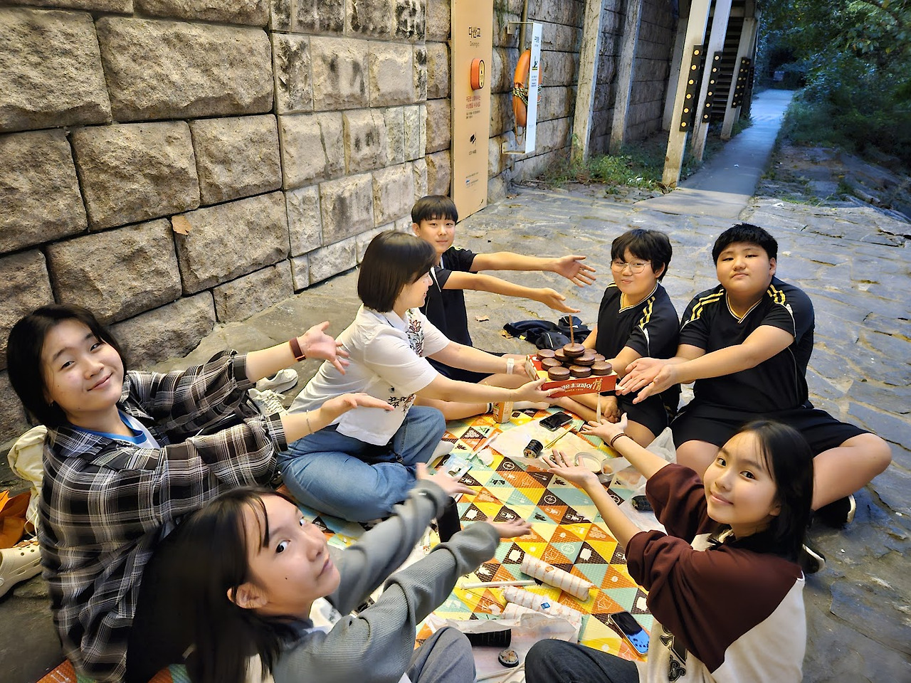 우리는 징검다리를 건너 적당한 장소를 찾아 돗자리를 깔고 라이어게임, 마피아게임, 아이엠그라운드, 노래 맞추기 등을 하며 웃음이 가득한 시간을 보냈습니다.