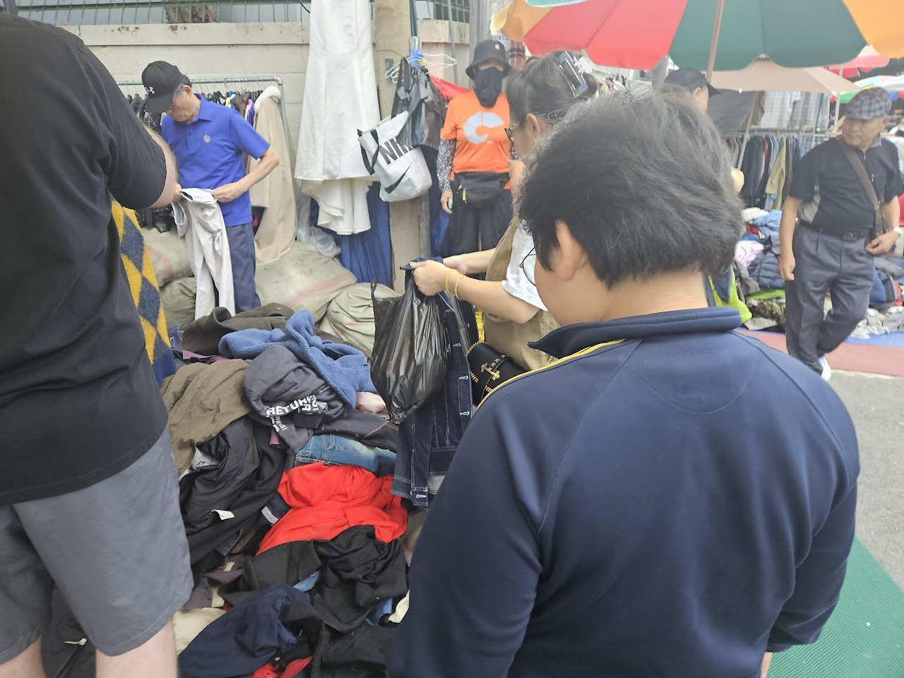 골목마다 많은 상인들과 저렴하게 옷을 구입하러 온 사람들로 가득했습니다.