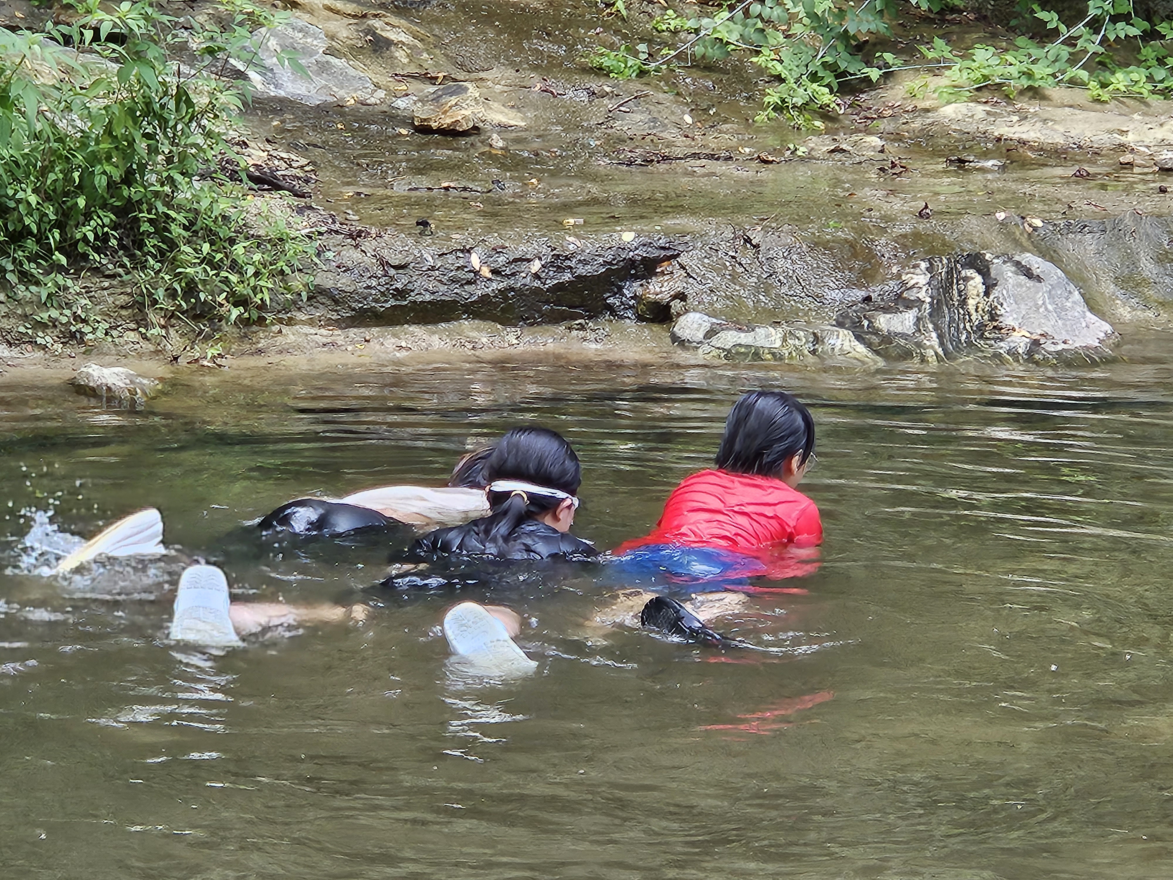 수영도 하고, 한쪽에서는 패트병으로 물고기를 잡았습니다.