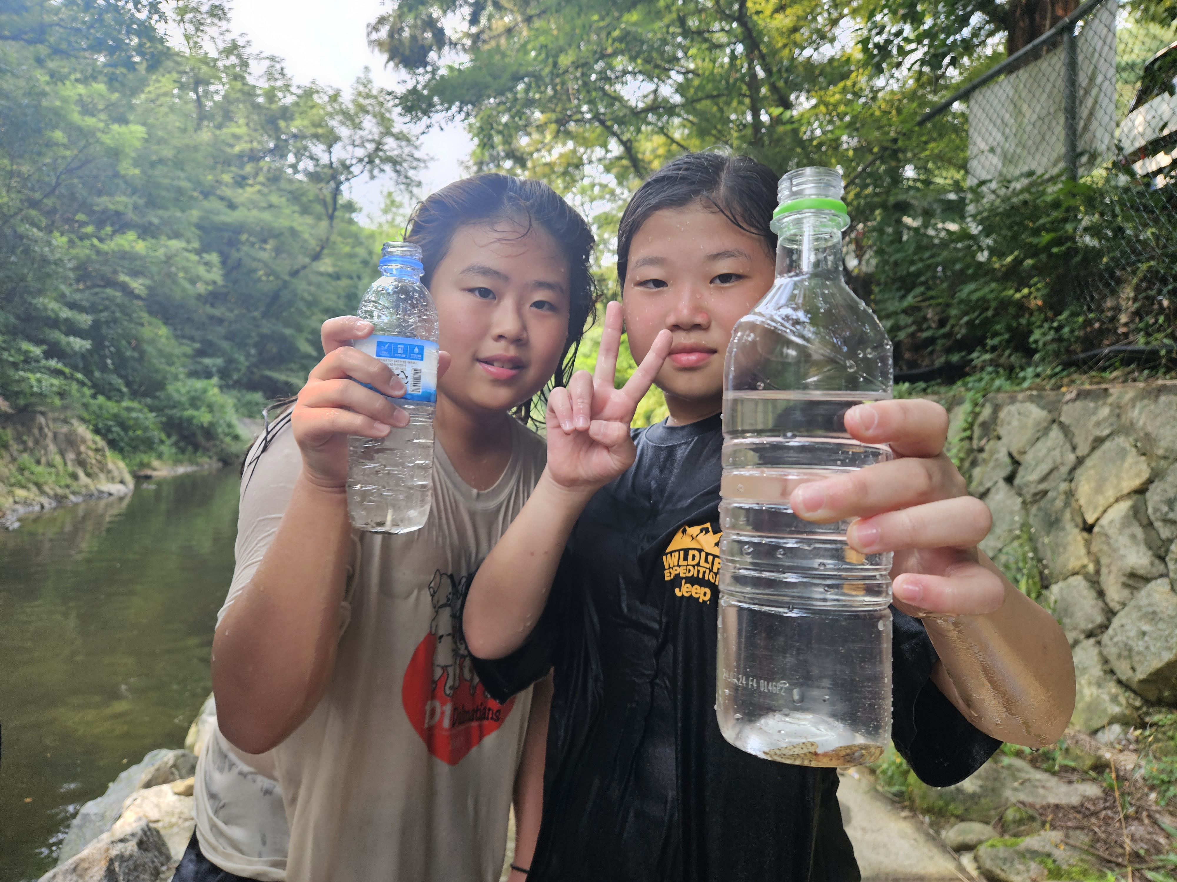 수영도 하고, 한쪽에서는 패트병으로 물고기를 잡았습니다.