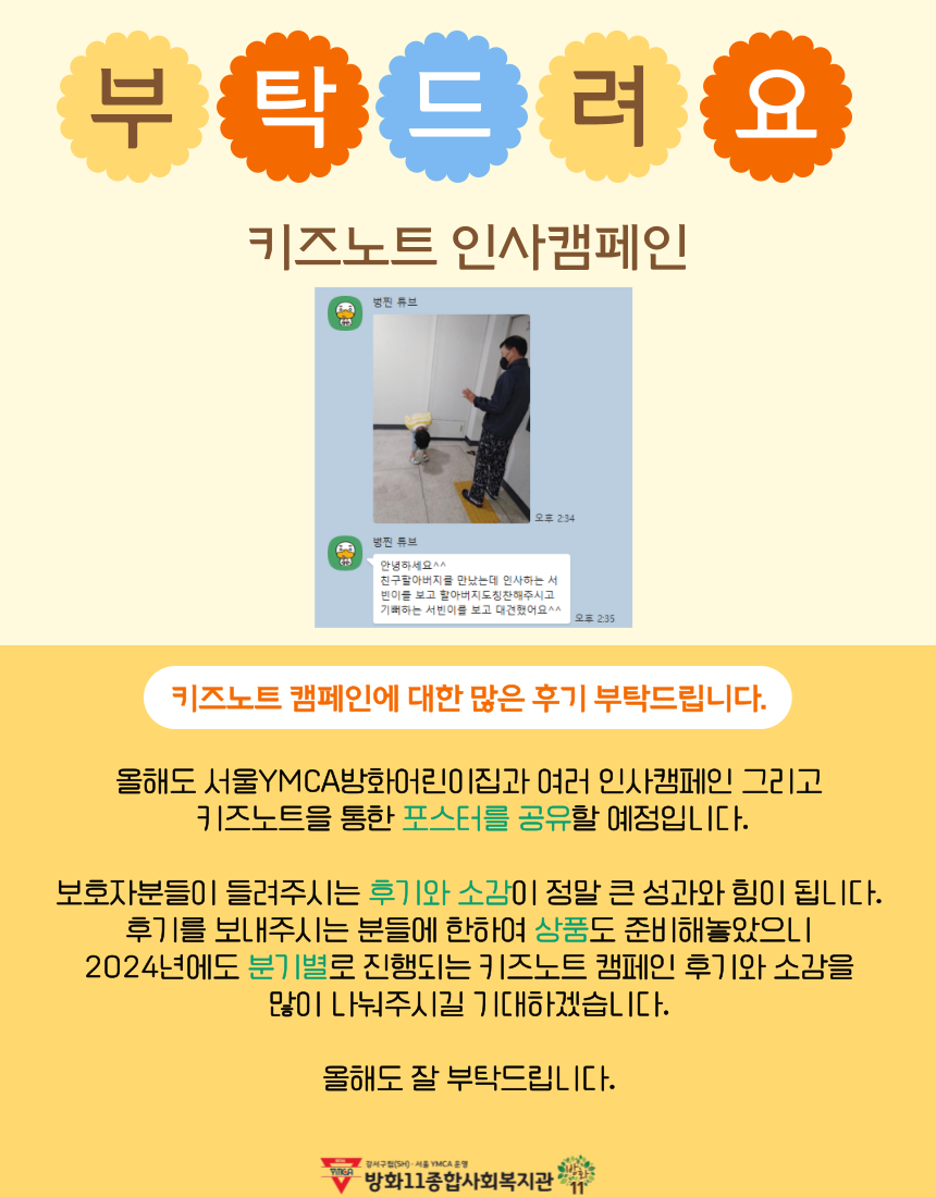 <서울YMCA방화어린이집 키즈노트 인사캠페인>