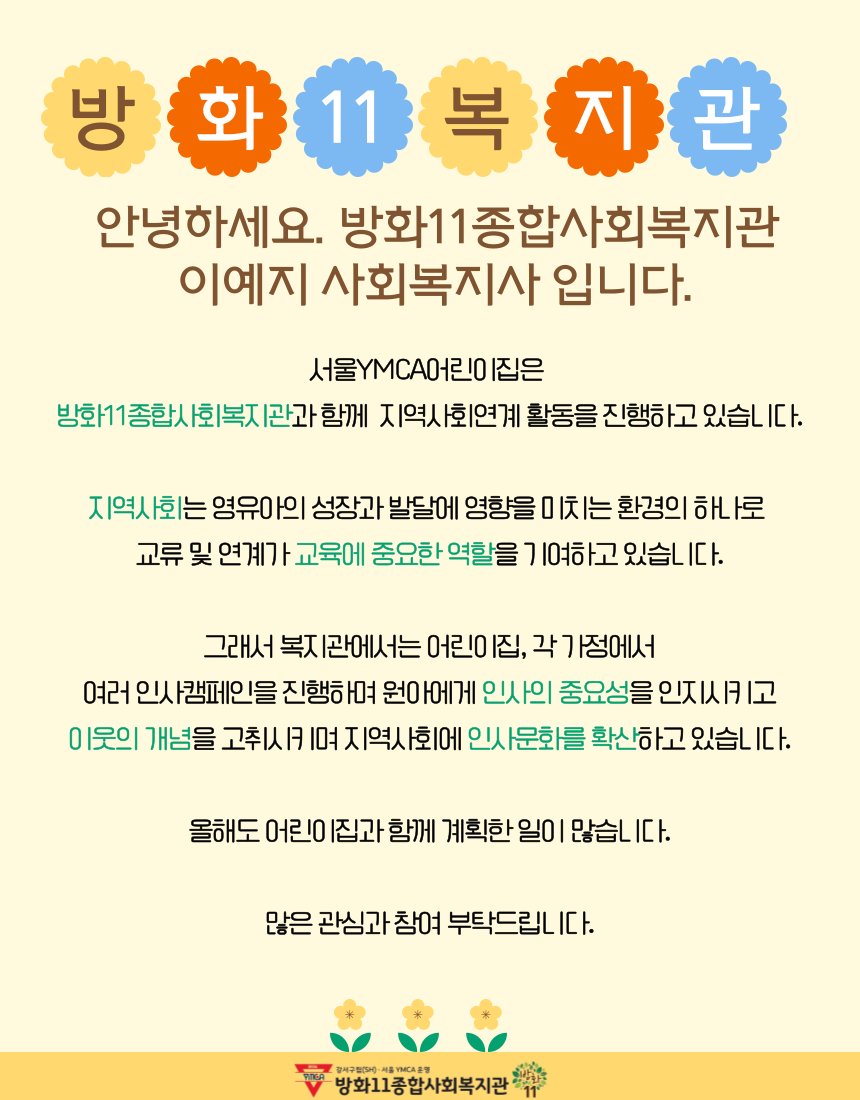 <서울YMCA방화어린이집 키즈노트 인사캠페인>