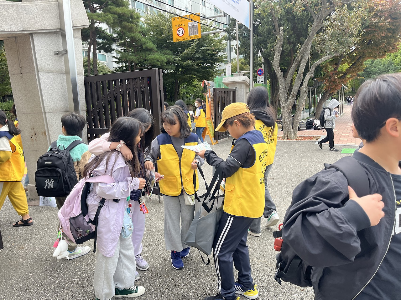 우리 친구들보다 일찍 출근하셔서 등굣길에 미쳐 응원을 못받으신