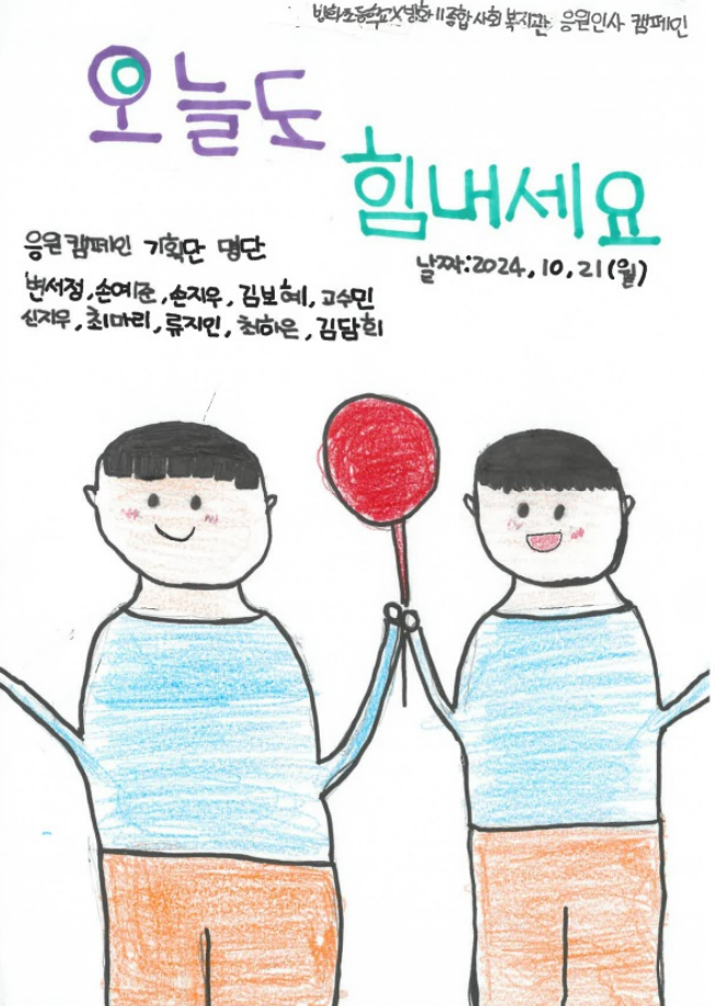 1학기 때는 사회복지사가 주도하여 가정의 달 인사캠페인을 진행했습니다.