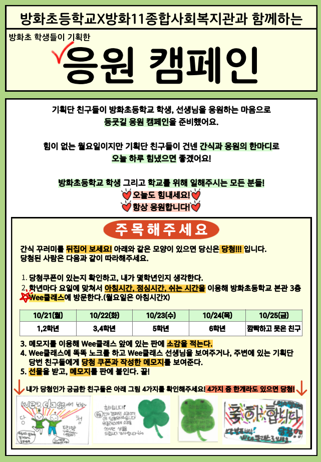 방화초등학교 기획단과 함께 이룬 응원캠페인.