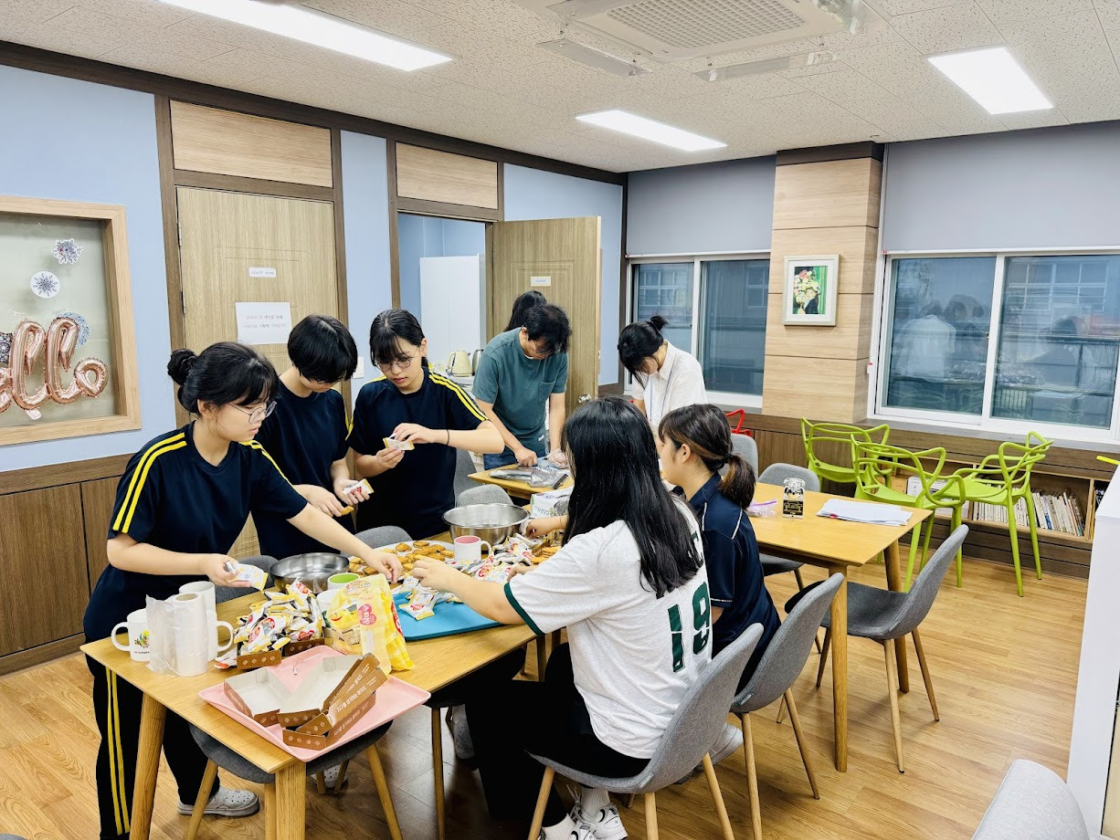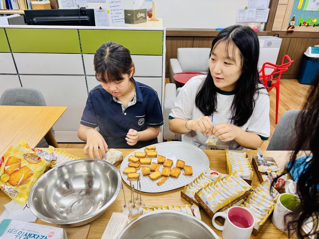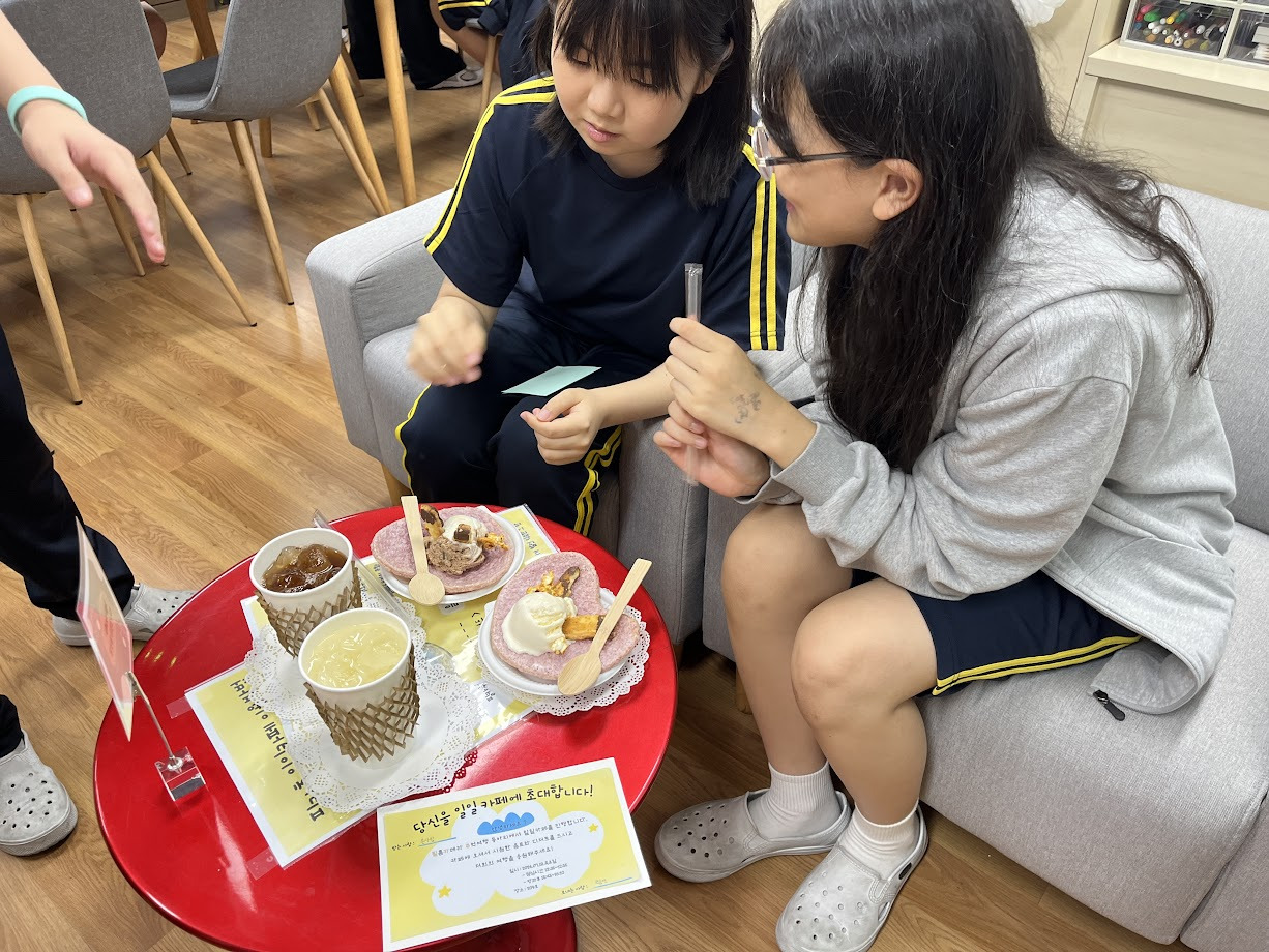 일일카페 당일 점심시간과 하교후 시간을 활용하여 손님을 초대해 디저트와 음료를 만들어드렸습니다.