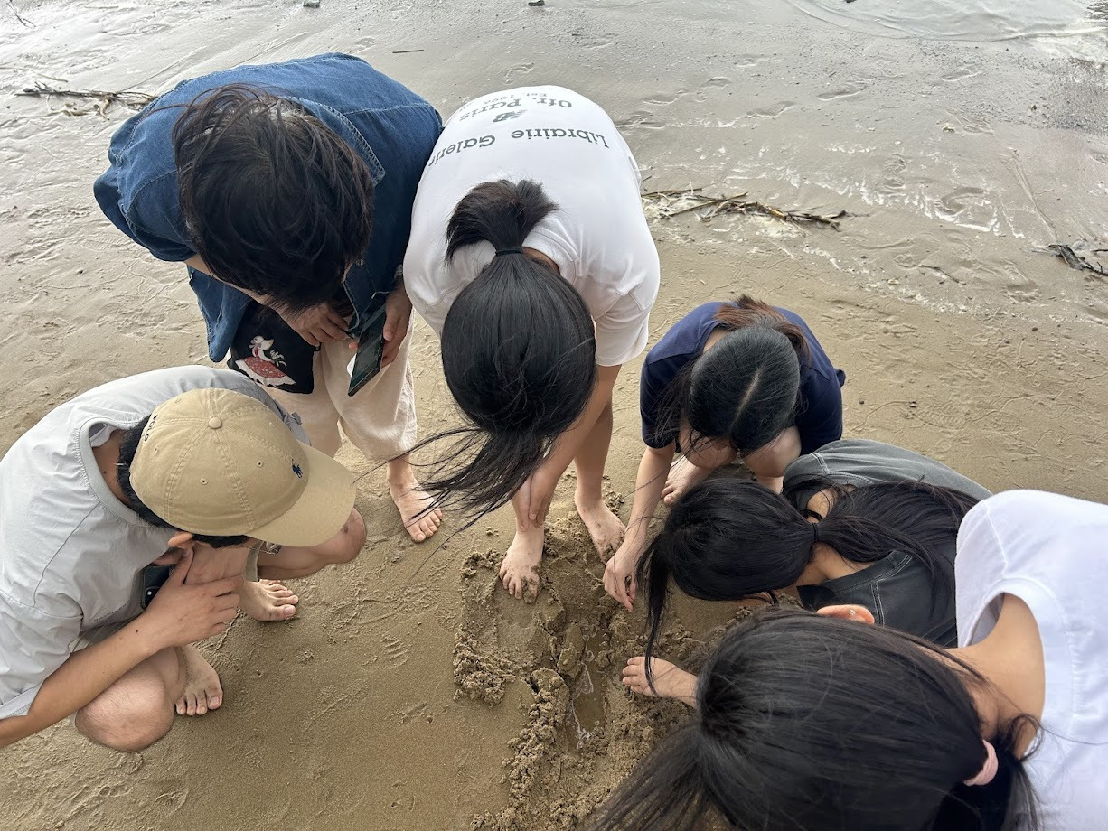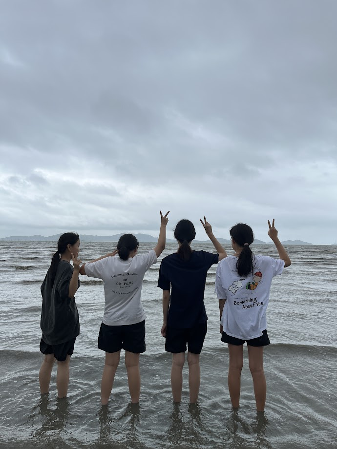 함께 바다에 놀러가서 어울려 노니 더 친밀해졌습니다.