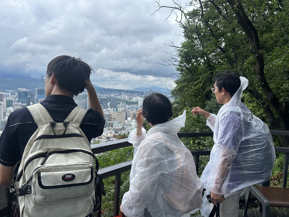 우비를 입고 남산을 걸어올라갔습니다. 올라가며 사진도 찍고 자연도 만끽했습니다.