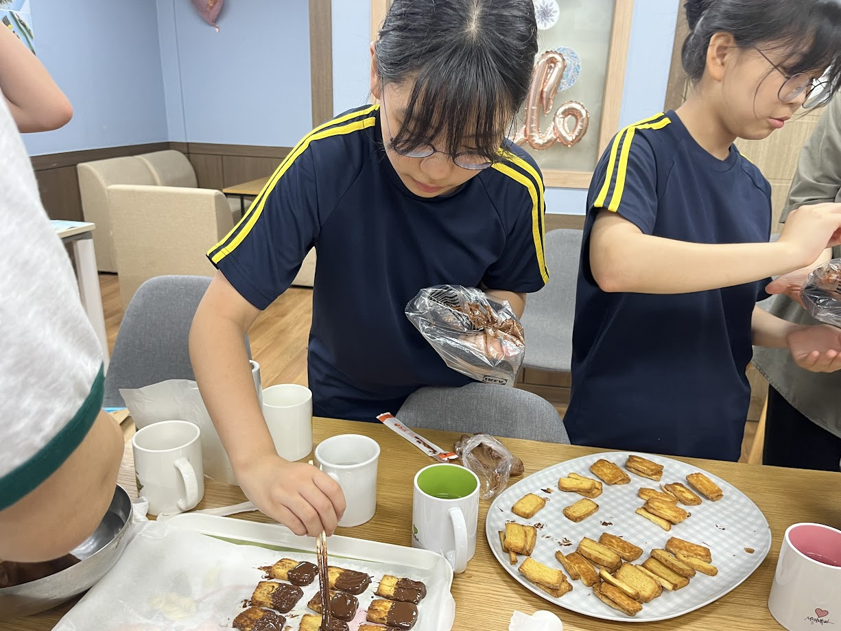 아빼쿠에 필요한 쿠키도 직접 초코를 녹여 만들었습니다.